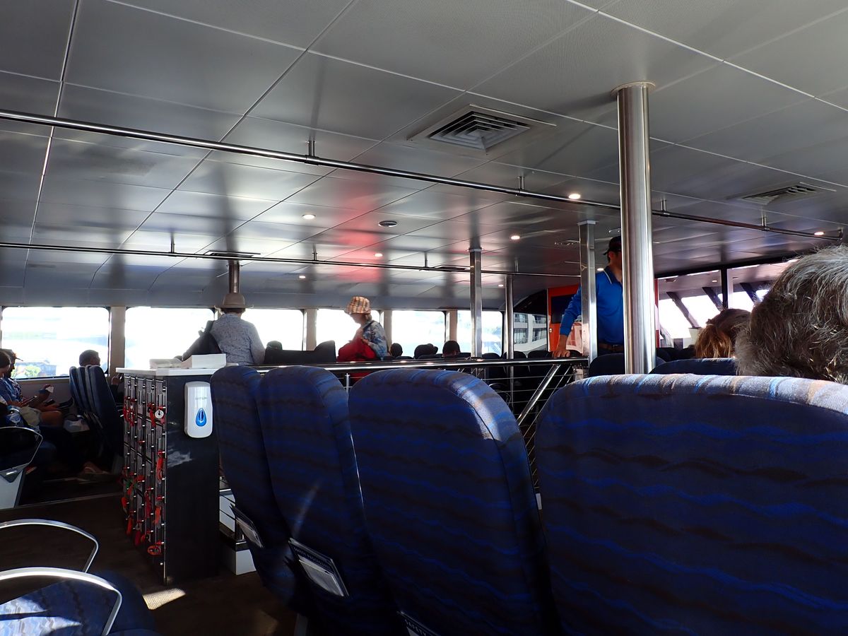 行き帰りのフェリーは大きめで、行きの船内ではコーヒーなどが飲めます。揺れが結構しますが、その揺れも眠たい私たちには心地よく感じました。
