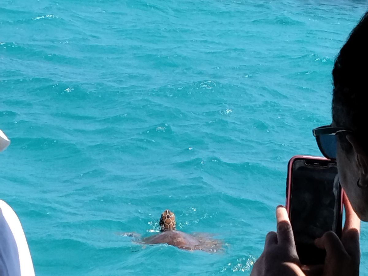 シュノーケリングでは、亀が真下を泳いでいました!水中カメラを持っていくのをお勧めします!