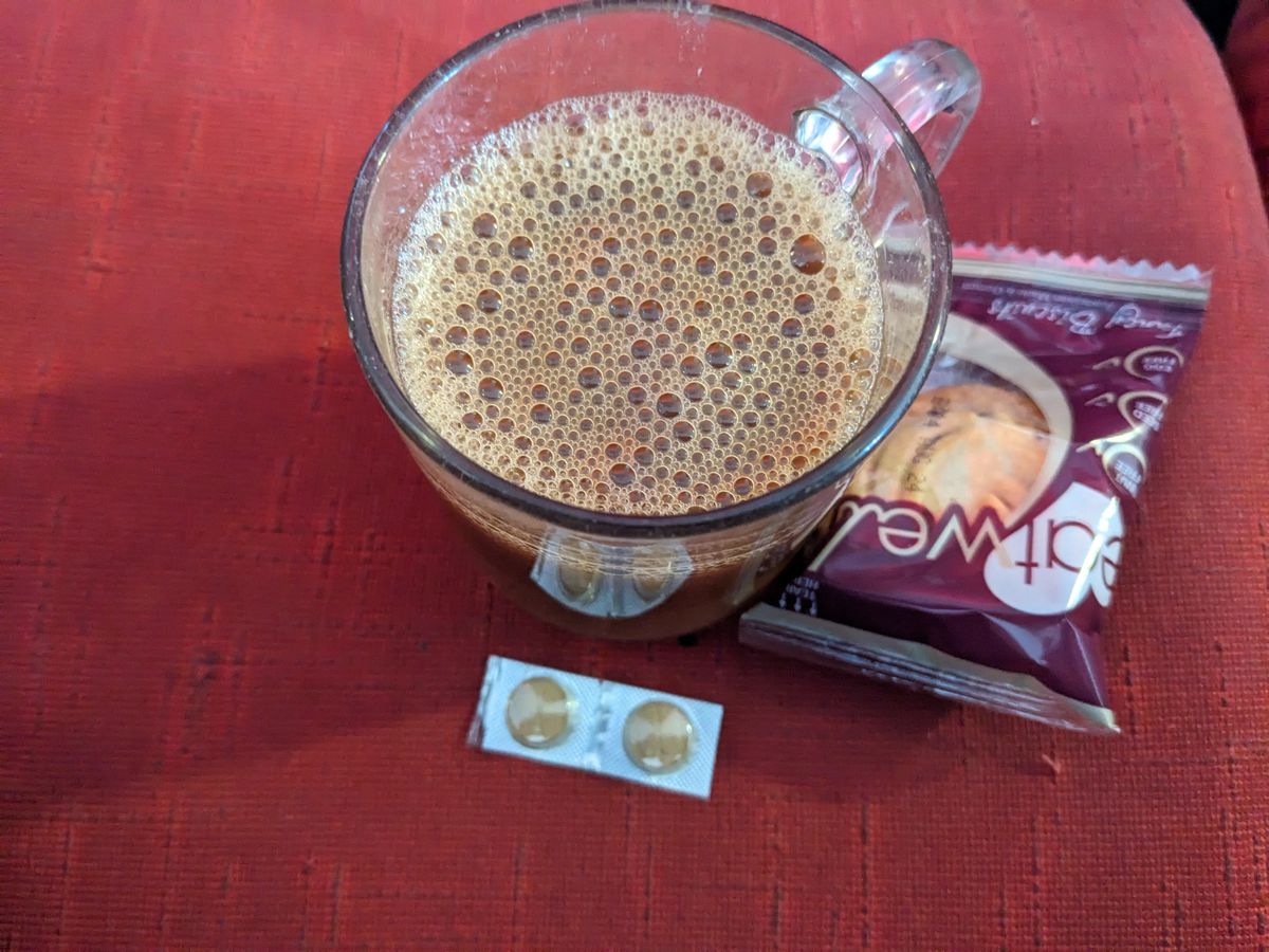 フェリーに乗ってすぐに下へ降りて、コーヒーとクッキーを頂けました。