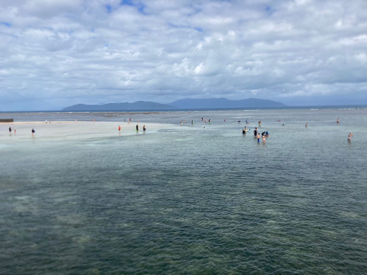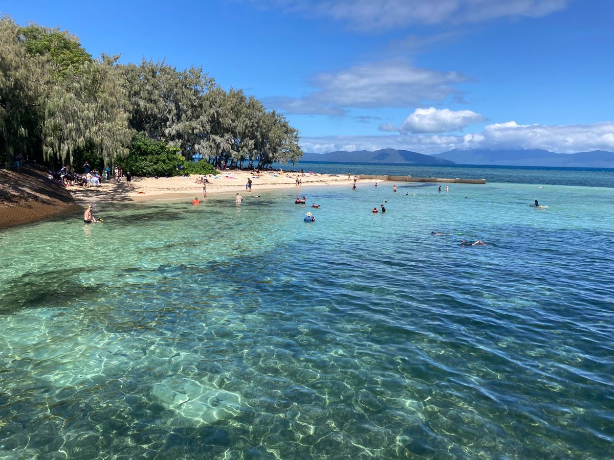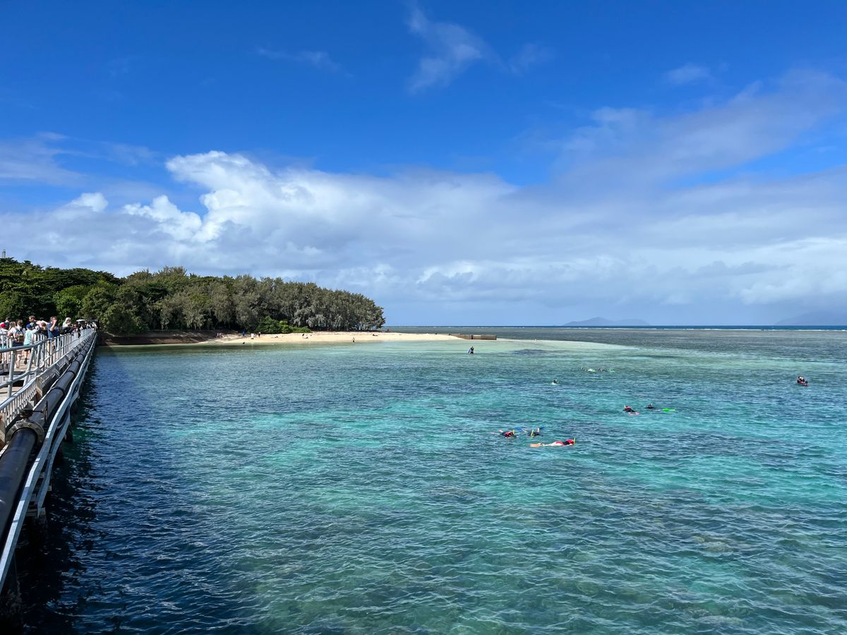 2023年7月後半に10時30発、17時20ケアンズ着に参加。参加はケアンズ初日で飛行機が6時15空港着、ホテルに荷物を預け、ターミナル近くで朝マックし、ブラブラすると出発時間に。海は沖縄よりも青が濃く、コバルトブルーも鮮やかで感動。11歳の息子は水着だったが冷たくて腰までしか入れず。西洋の人はシュノーケルを楽しんでいた。足洗いがあり便利だった。初日に行って正解。とにかく海がキレイでまた行ってみたい️