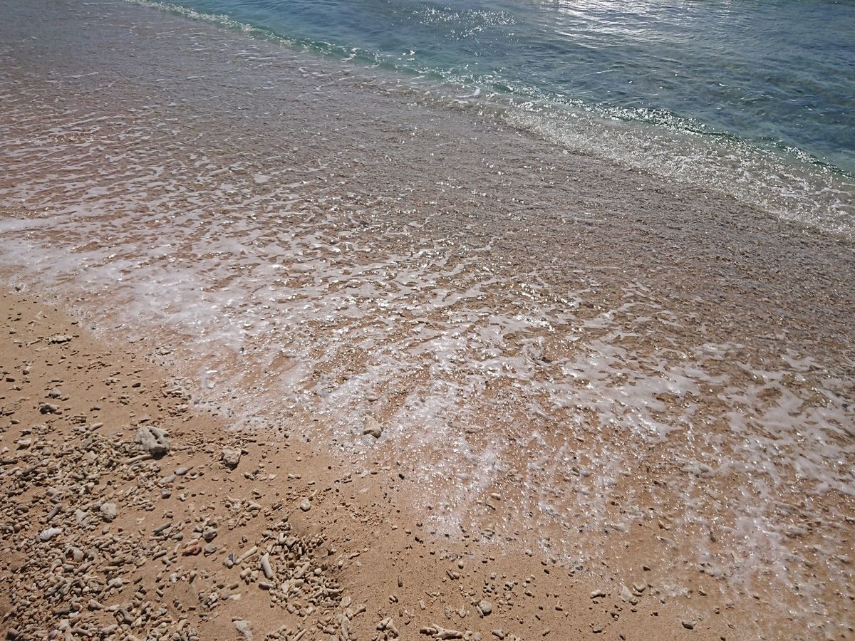 帰り際に少し晴れてきましたが時すでに遅し。死んで打ちあげられた白い珊瑚のカケラだけを見て、砂だらけになって帰ってきた感じです。
