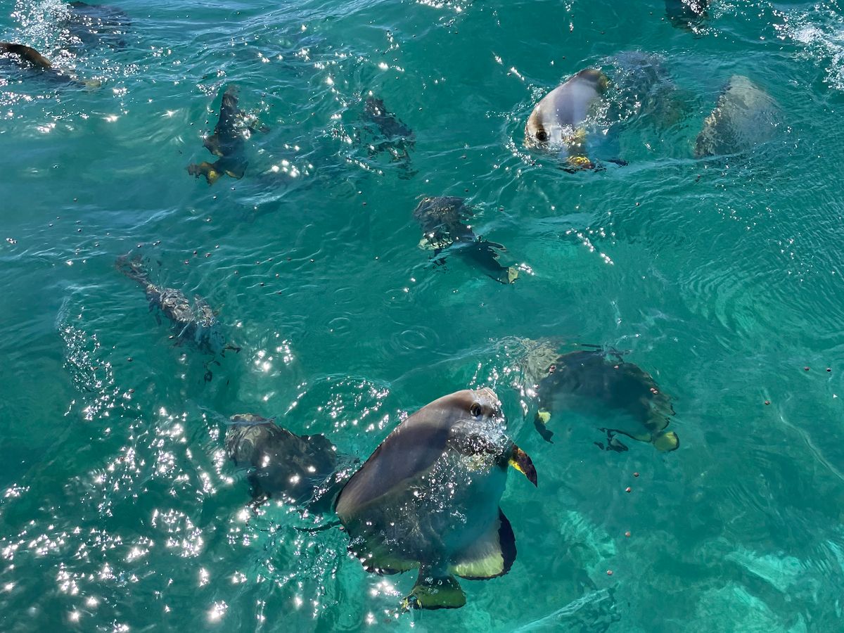 グラスボトムボートでは想像以上の数の魚たちを上から見ることができ新鮮でした。