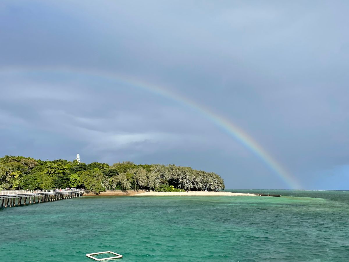 朝のケアンズは雨が降っていることが多いですが、そう心配しないでください。グリーン島がある沖に行けば晴れているケースが多いそうです。