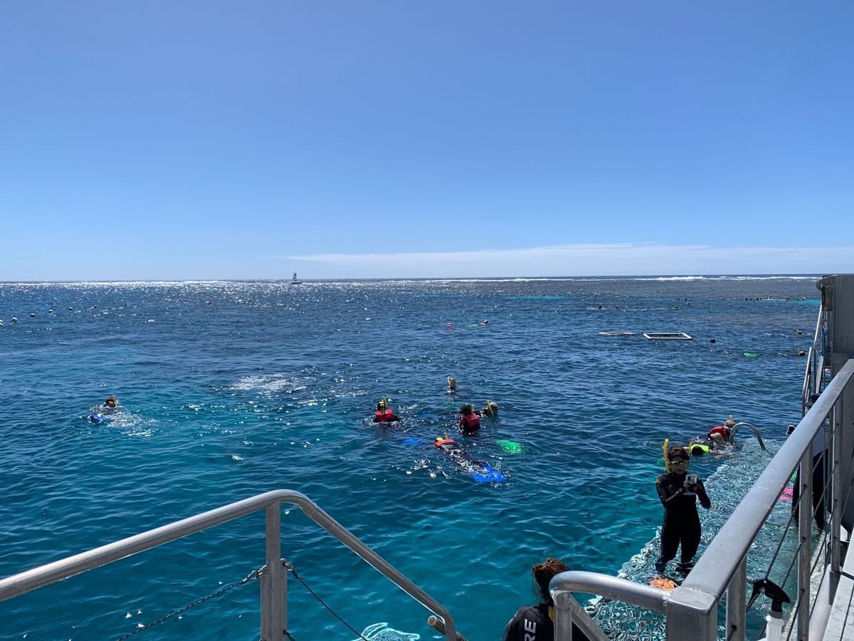 Great Adventure に乗ってグリーン島に着くと、インストラクターのゆいさんという方(間違っていたらごめんなさい)が、潜る前に優しく丁寧に説明をしてくださり、プールでも常に私達の不安を払拭するよう勇気づけてくださいました。そして実際に海に潜った時は、最初から最後まで私達の腕をぎゅっと持って下さり、常に大丈夫か確認してくださいました。初めて見る海の世界はとても綺麗で、自分が魚と一緒に泳いでいるのが信じられないくらいでした。長年の夢が異国の地ケアンズで叶って、インストラクターさんに心からお礼を言いたいです。