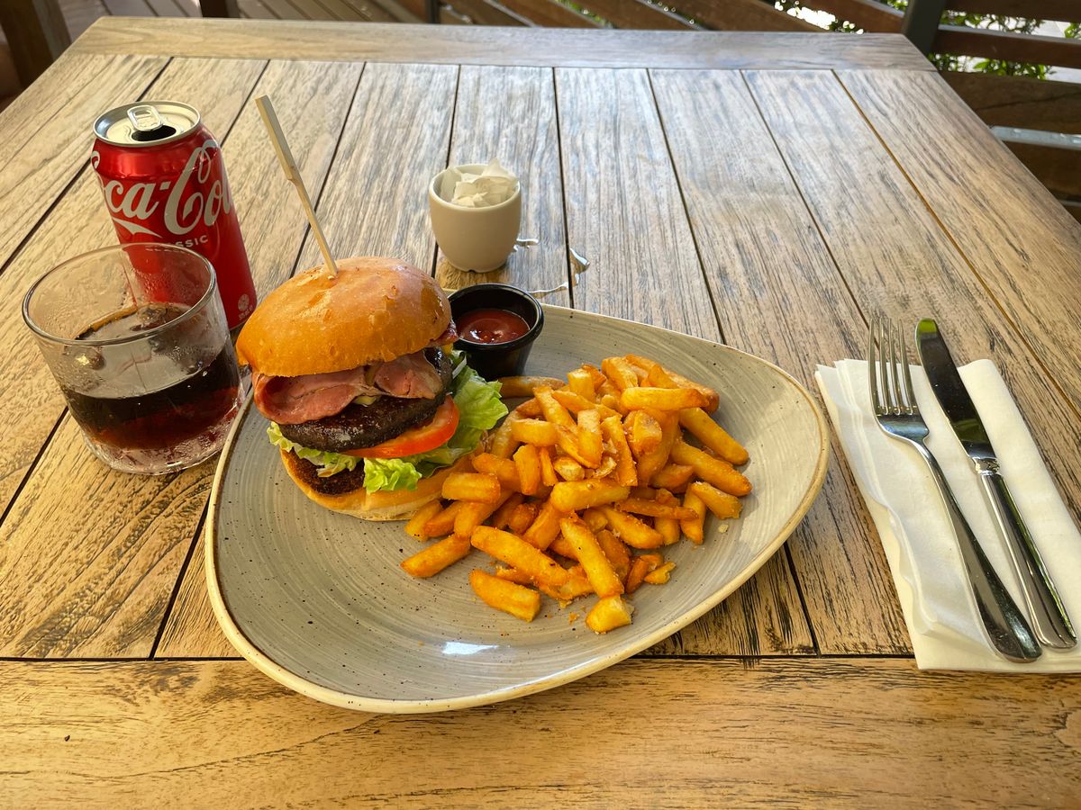 島内の鳥はかなり人に慣れているので、食事の際は十分に気をつけたほうが良いです。隣のテーブルの方々はハンバーガー半分とられてました。