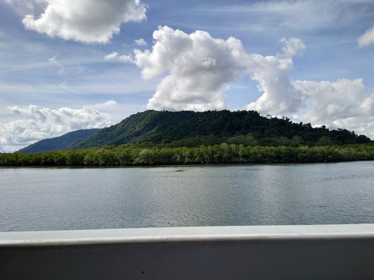 ホテル→バス移動→クルーズ乗船→リバークルーズ→海→島と景色が変化し続けるので、移動中も飽きません。船内では安全説明やシュノーケリングの使い方レクチャーを受け、ライクラスーツやシュノーケリング器具を選んだり着替えたり、マングローブにワニが隠れていないか観察したり、デッキで海風に風に吹かれたりしているうちに島に到着します。