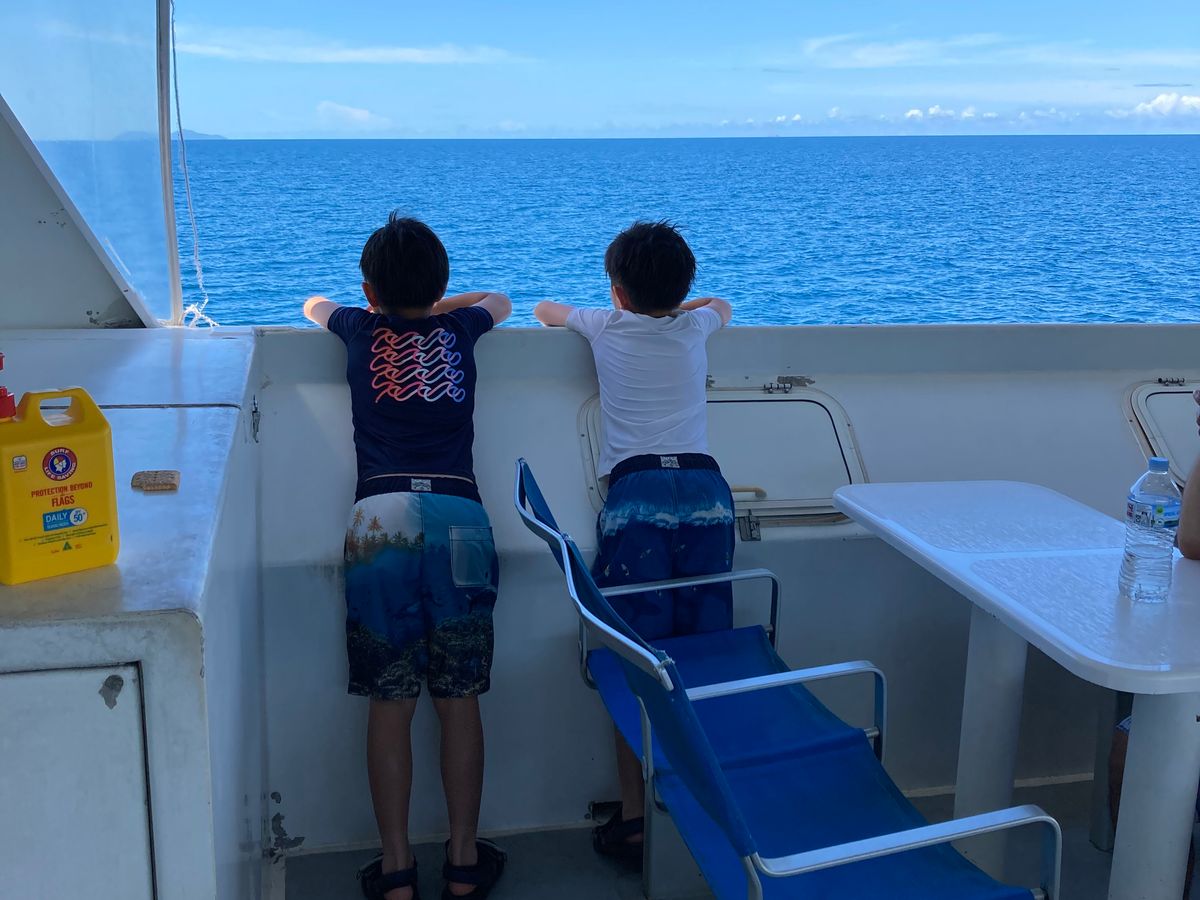 海に入った瞬間からサンゴの世界で驚きました。足のつかない海は初めてなので子供たちが怖がるかと思いきや、美しい魚を見つけては夢中になってぐんぐん泳いでいました。Jimmyさんがボートの上からウミガメを見つけて教えてくれます。映像でしか見たことのない海の世界にただただ感動!ずーっと見ていたかったです。