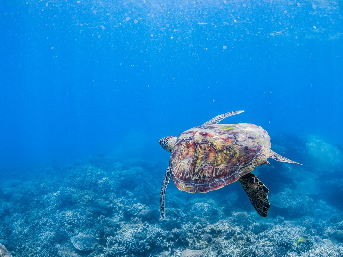 珊瑚礁がすごく巨大で色鮮やかで初めて見る光景に感動しました。海の中の魚には触れることは出来ませんが、至近距離で魚も見れたし、ウミガメにも近寄る事が出来ました。