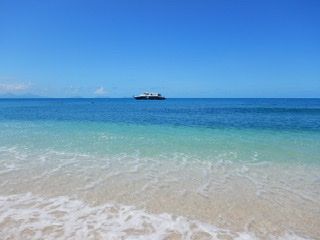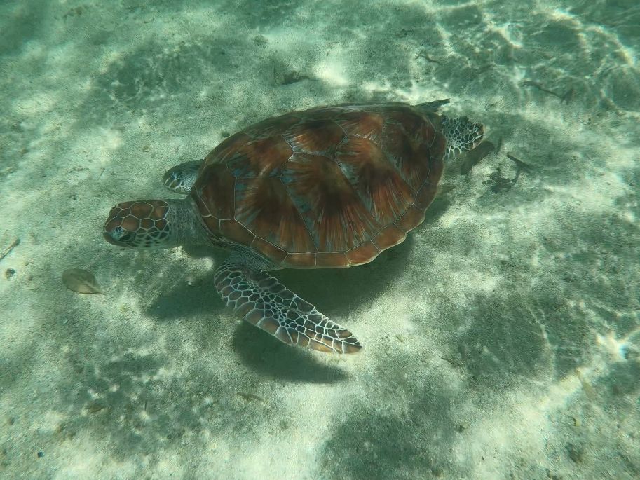 前日と当日雨でキャンセルしようかと思っていたのですが、行ってみると晴天で海もとっても綺麗でした!ウミガメが100%みれる島だと調べていましたが、その日4頭のウミガメに会えました!!その日酔い止めも飲んで行きましたが船も大きいので、揺れは感じませんでした。コーヒーのサービスは出航までの時間までなので、飲みたい方は早めに取りに行くことをオススメします。島ではビーチを独り占めしているような感覚になります。注意していただきたいのは満潮干潮をチェックすることです。シュノーケルをするときに満潮どきはすこし怖かったので。なのでこの島に行く時は満潮干潮をチェックするか、もしくは1日島で過ごすことをオススメします。カメもサメも大きな魚も見れます。運がいいとエイの群れもみれるそうです。ですが、色とりどりの魚をイメージして行ってはいけません。色とりどりの熱帯魚を見るのは違うツアーでシュノーケルをしたほうが良いでしょう。このツアーはあくまでもビーチを楽しむものだと思います。あとウミガメをみる目的。シュノーケルもプランに入っていて7000円前後は安いと思います。実際GoProで撮影したウミガメがとても可愛かったので、ウミガメをビーチでのんびりみたい方にはめちゃくちゃオススメです。