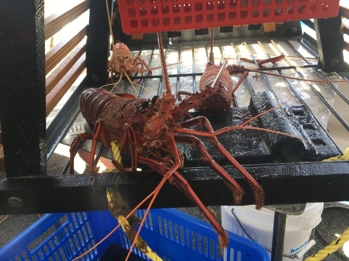 早速、勧められるままにウェルカムドリンクをいただきながら寛いでいると、現地クルーの簡単なインストラクションの後に船は出発して島の裏手沖合のロブスター漁場へ。