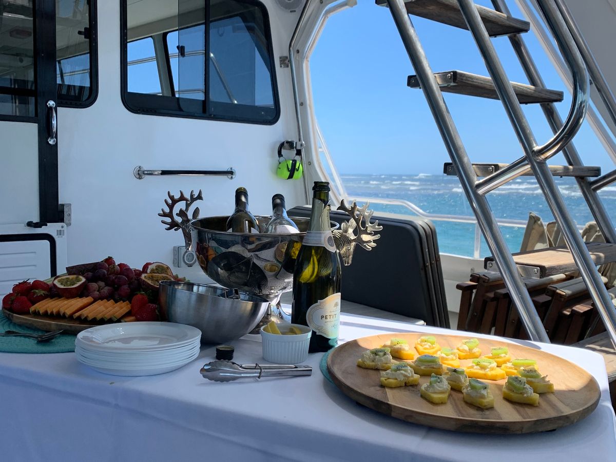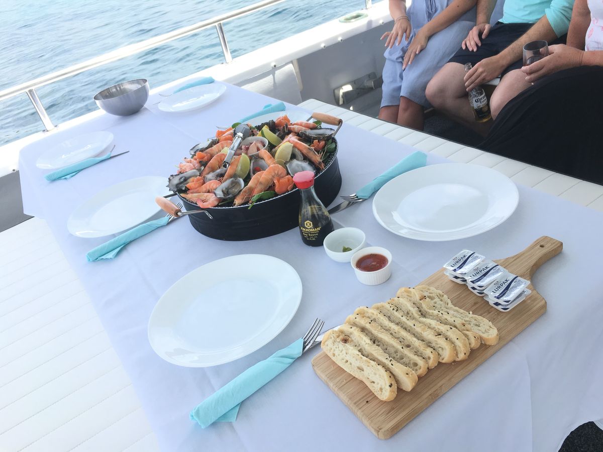 シーフードクルーズが始まると、ロブスター捕獲体験やきれいな海を見ながらワインを楽しみます。途中、かなり揺れが強く、普段は船酔いをあまりしない私でも気分が悪くなってしまいました。そのため、楽しみにしていた食事があまり食べられずに残念でした。酔い止めを事前に飲むことをお勧めします。しかし、新鮮なロブスターの刺身などを食べることができ、周りの乗客とのコミュニケーションも楽しむことができました。