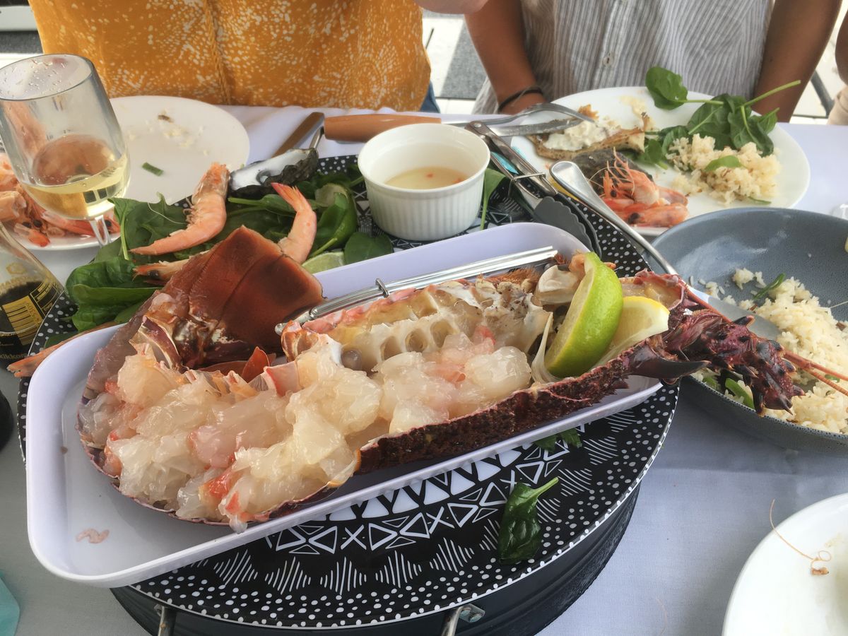 ロブスターは刺身、グリル双方で美味しくいただき大満足。とにかく素晴らしい天候、美しい景色と海、美味しいお酒と肴、とこの上ない贅沢なひとときを過ごすことが出来ました。