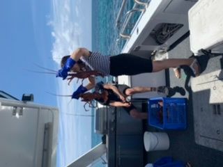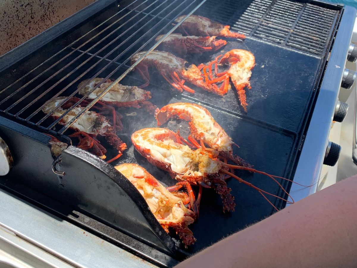 ウェルカムドリンクで迎えていただき、フィンガースナックを経てロブスター漁体験をしました。捕獲したロブスターはBBQコンロで焼いたり、刺身でいただいたりと美味しくいただきました。