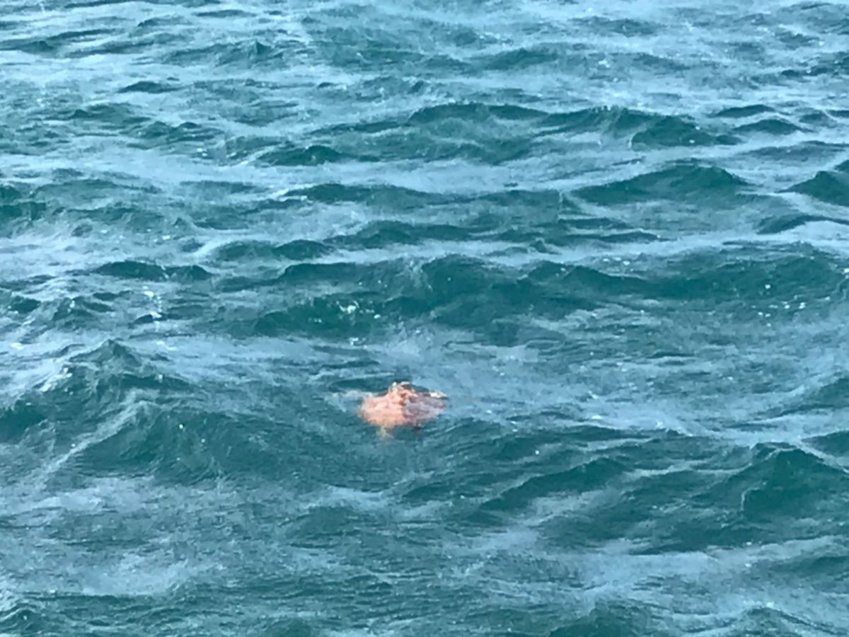 ちょっとがっかりしながら帰りの船に向かって桟橋を歩いていたら、ウミガメが!!お別れの挨拶に来てくれたんだと感動しました!