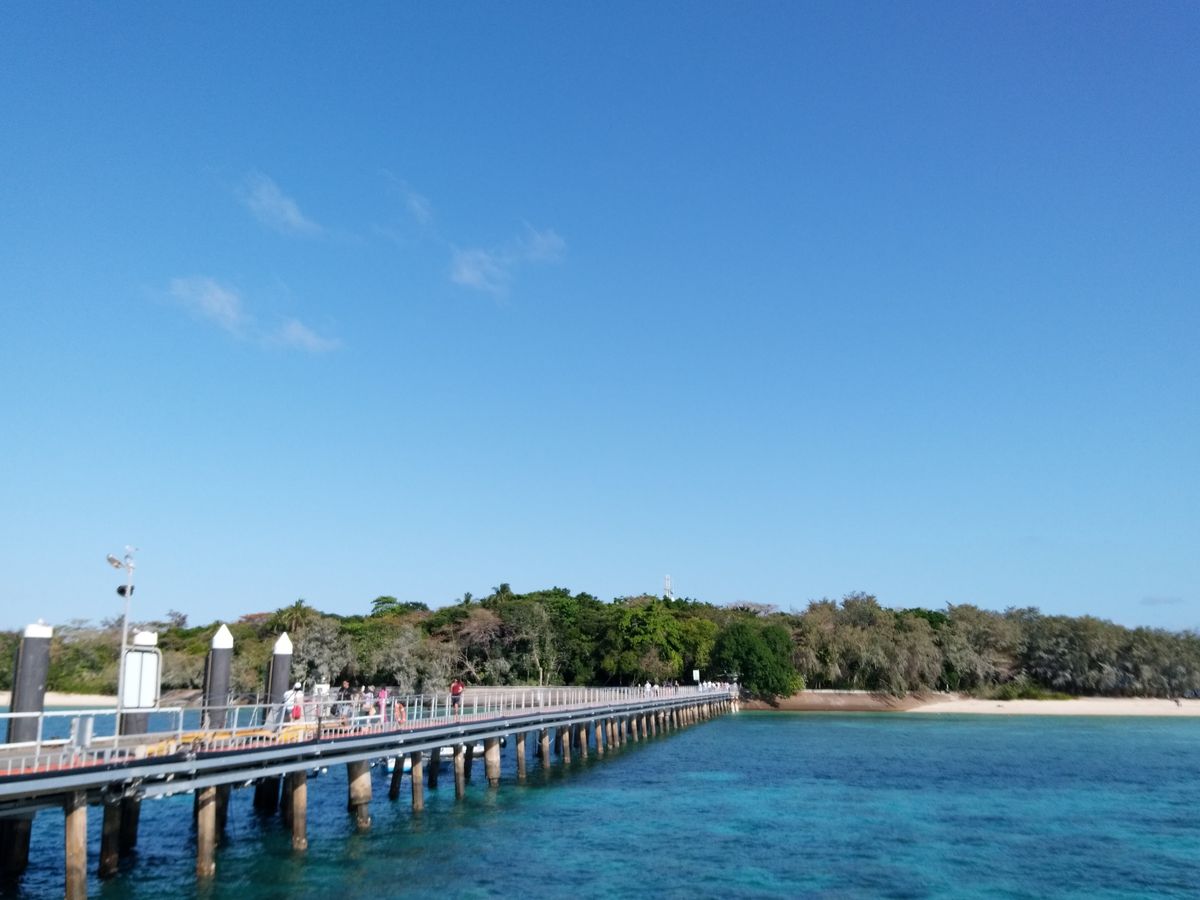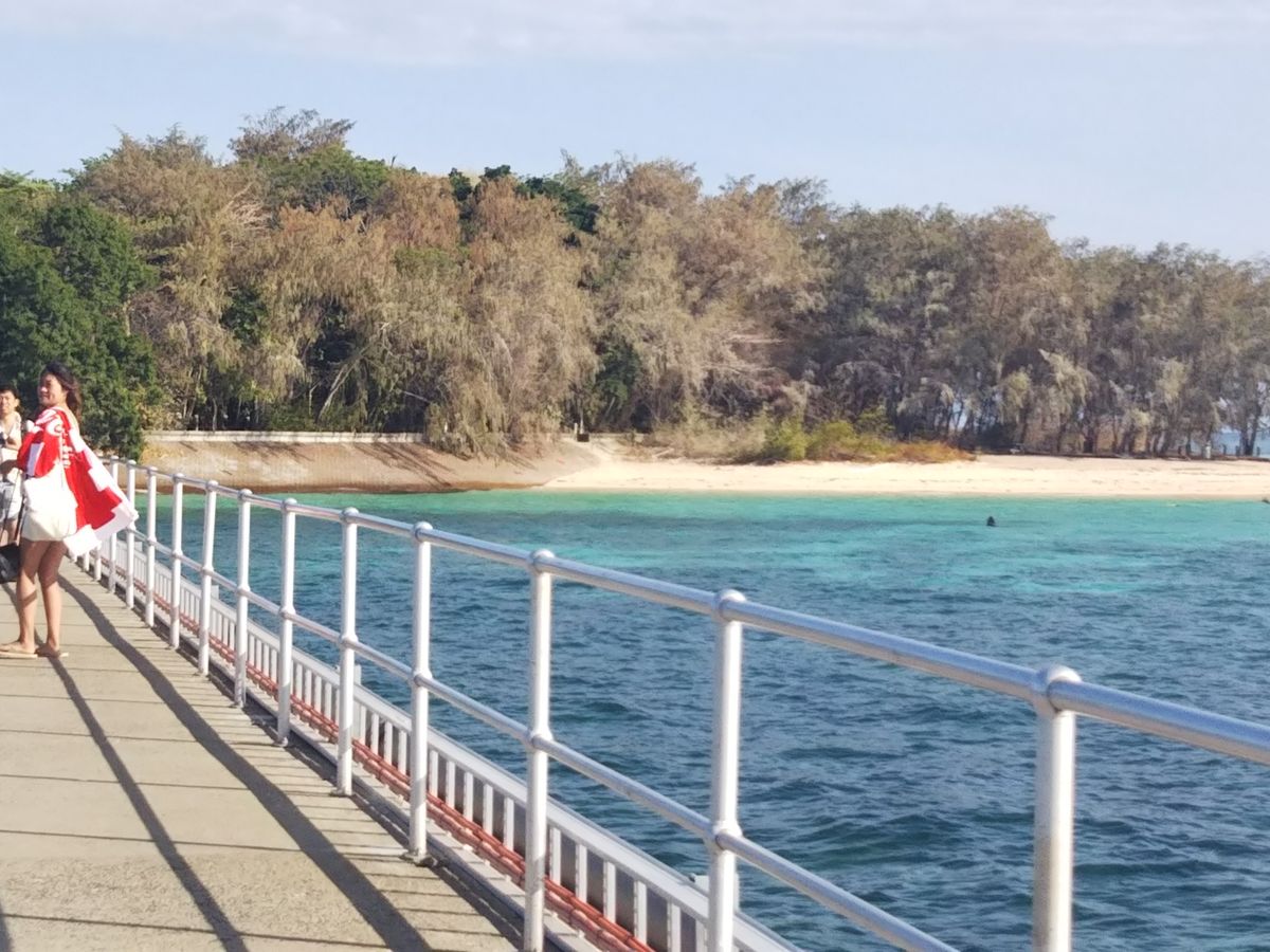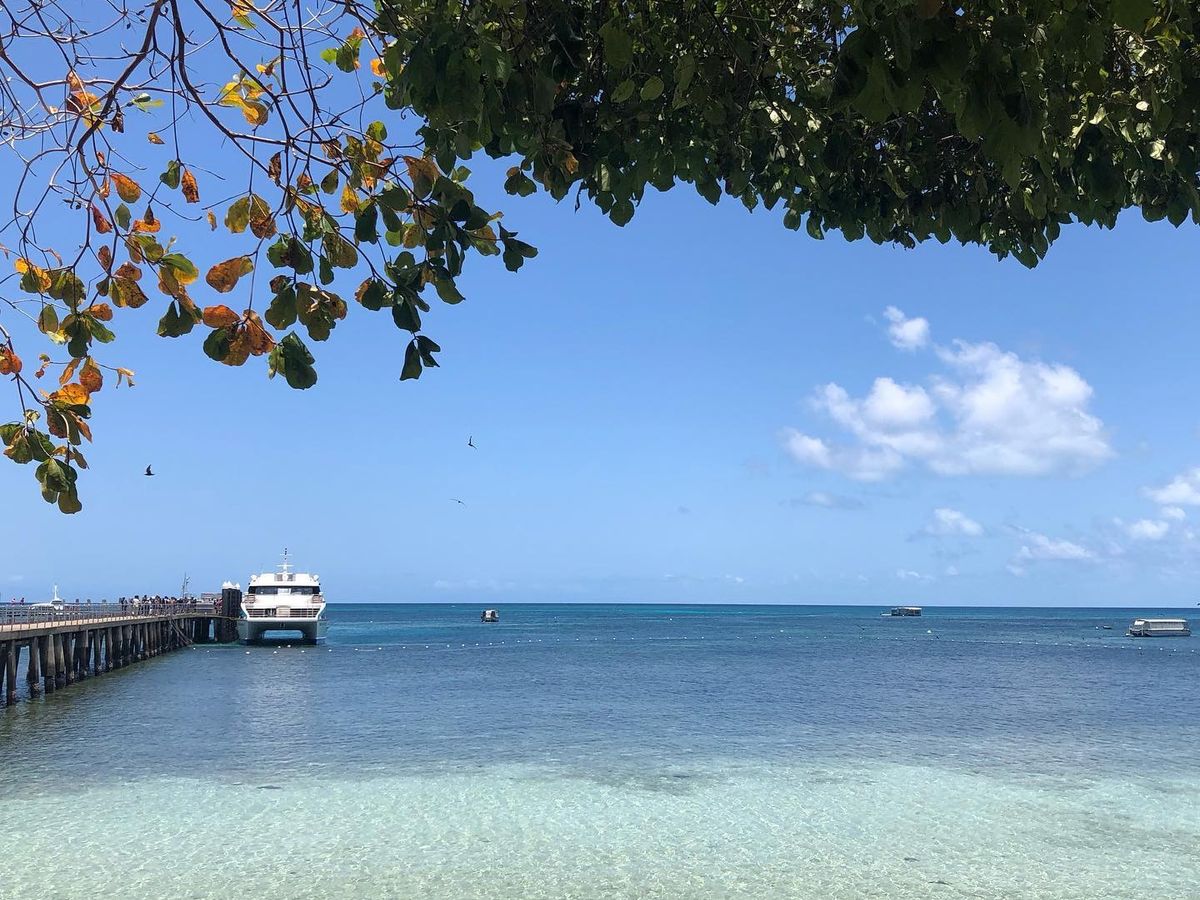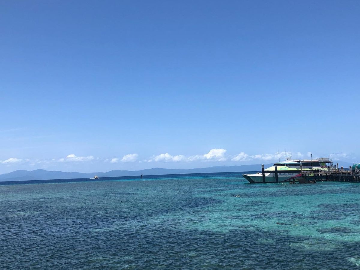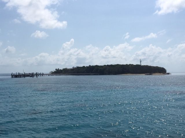 ケアンズに到着したその日に船で約45分のところにあるグレートバリアリーフ(グリーン島)に行きましたが、まさに青い宝石のようにキラキラと透き通る海が一面に広がっていました。船には日本語が話せるスタッフの方がいたのでグリーン島の乗り場確認やシュノーケル・グラスボトムボート選択が無事できました。私たちはグラスボトムボートに乗りましたが30分間乗っていて魚、カモメ、サンゴ礁、ニモ、カメを間近で見ることができ最高でした!お昼はエメラルドレストランで食べました。今回のツアーで唯一残念だったのがここ。お昼ご飯が正直おいしいのですが最高!とまでは言えませんでした。島は周るのに歩いて30分も無くて全体的に見て周れました。どこの浜辺も浅瀬の透き通る海ばかりで写真をバシャバシャ撮ってました。海に入らなかった私達が持っていて良かったのは帽子、日焼け止め、座るためのシート、タオルでした。日差しは暑いですが日陰だと割と過ごせるのでシートがあると綺麗な海を眺めながらのんびりできると思います!一番のおすすめスポットはグリーン島内に道があるのですがひたすら道に沿って行きお土産屋さんを右手に見えてもさらに進むと、あまり人のいない最強写真スポットがあります!!ぜひ探してみてください!