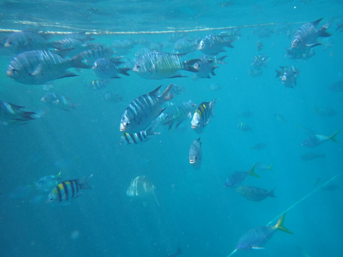海外サイトではサメ情報がかなりあって、参加するまでは楽しみより恐怖感のほうが情けないけど強かったです。実際にシュノーケルしてみると、範囲がかなり制限されていて、ちょっと離れると叱られます。サメから守るためには仕方がないのでしょう。透明度はなく、魚も少なく、石垣島のほうがはるかにきれいです。でもナポレオンフィッシュは2回見れました。怖がってばかりいないでやって見る価値はあります。富士山を眺めるのと、登るのとの違いですね。