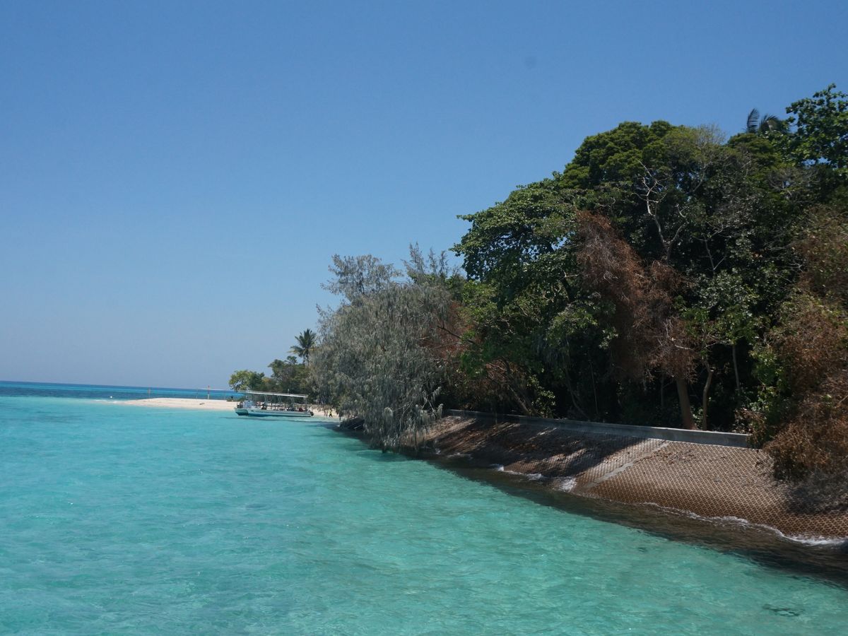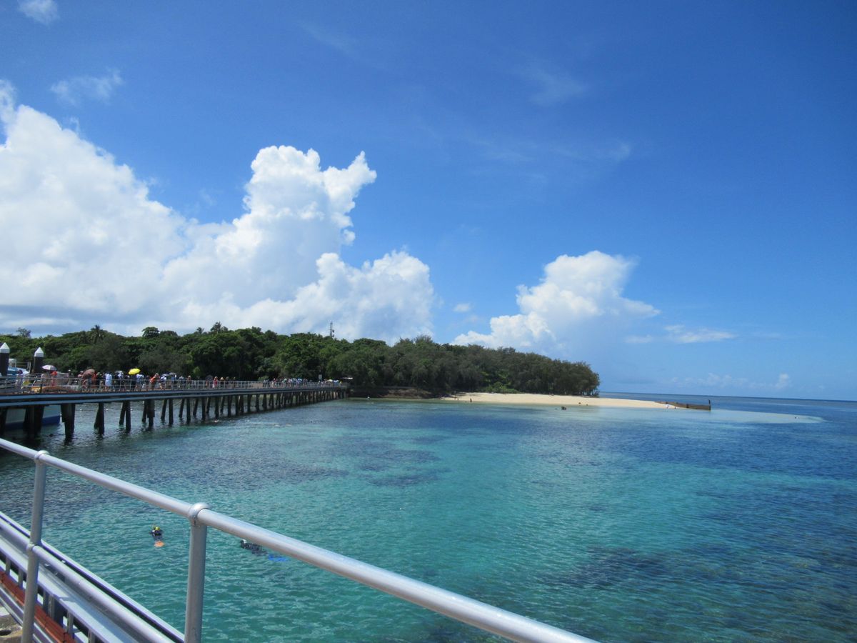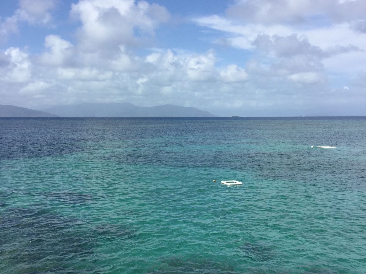 到着するとまず見えるのが「これこそイメージ通りのグレートバリアリーフ」と言わんばかりのエメラルドブルーの海です。浜辺から50メートルほどでエメラルドブルーから蒼色に海が様変わりし、とても綺麗でした。