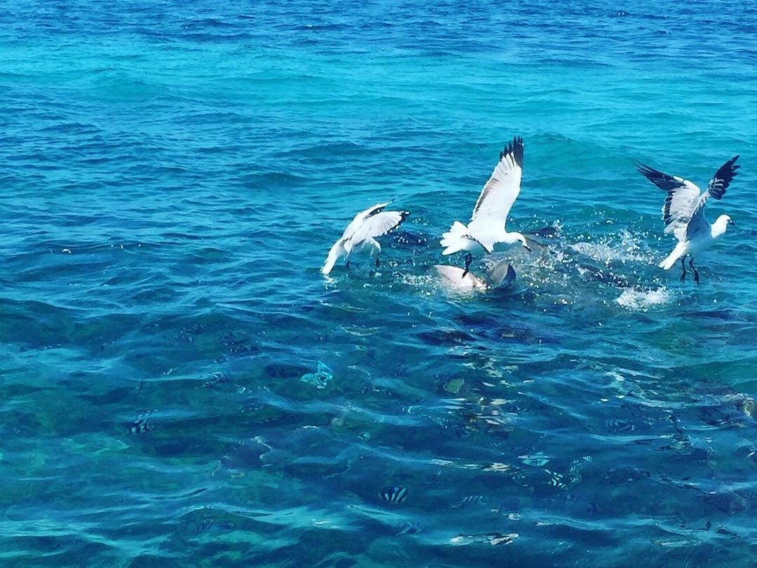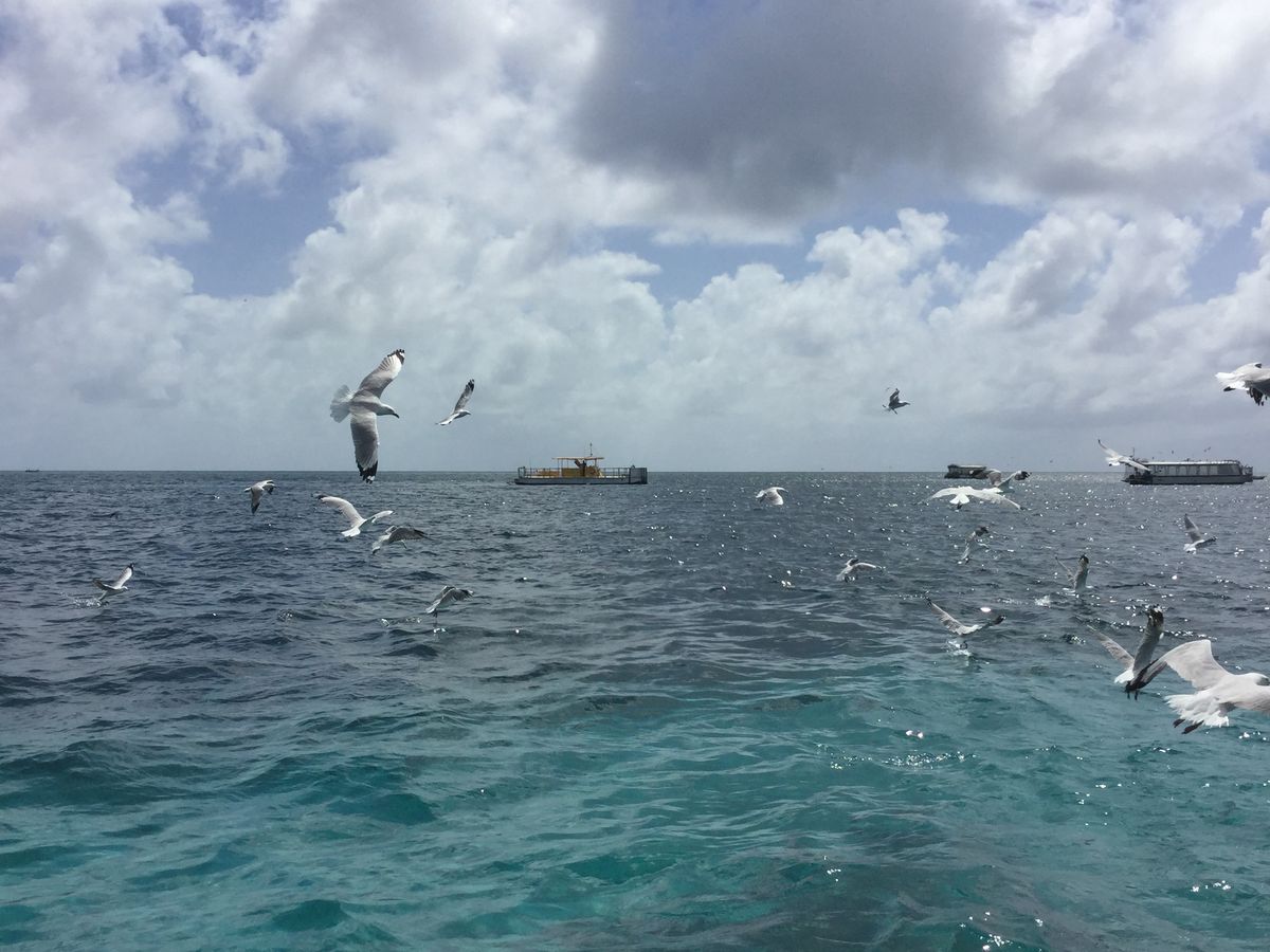 グラスボートに乗り、浜辺でのんびりしてランチを屋根付きのエメラルドレストランで食べましたが、噂通り島にはどこにでも鳥がいて、食事中に足を突かれました。