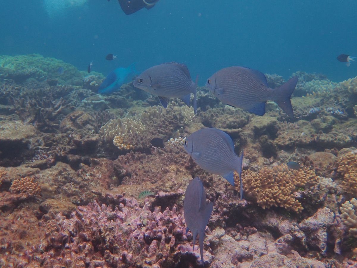 透明度が低いとなると、魚やサンゴも全然見えないかと思いきや、 沢山の魚が見られます。