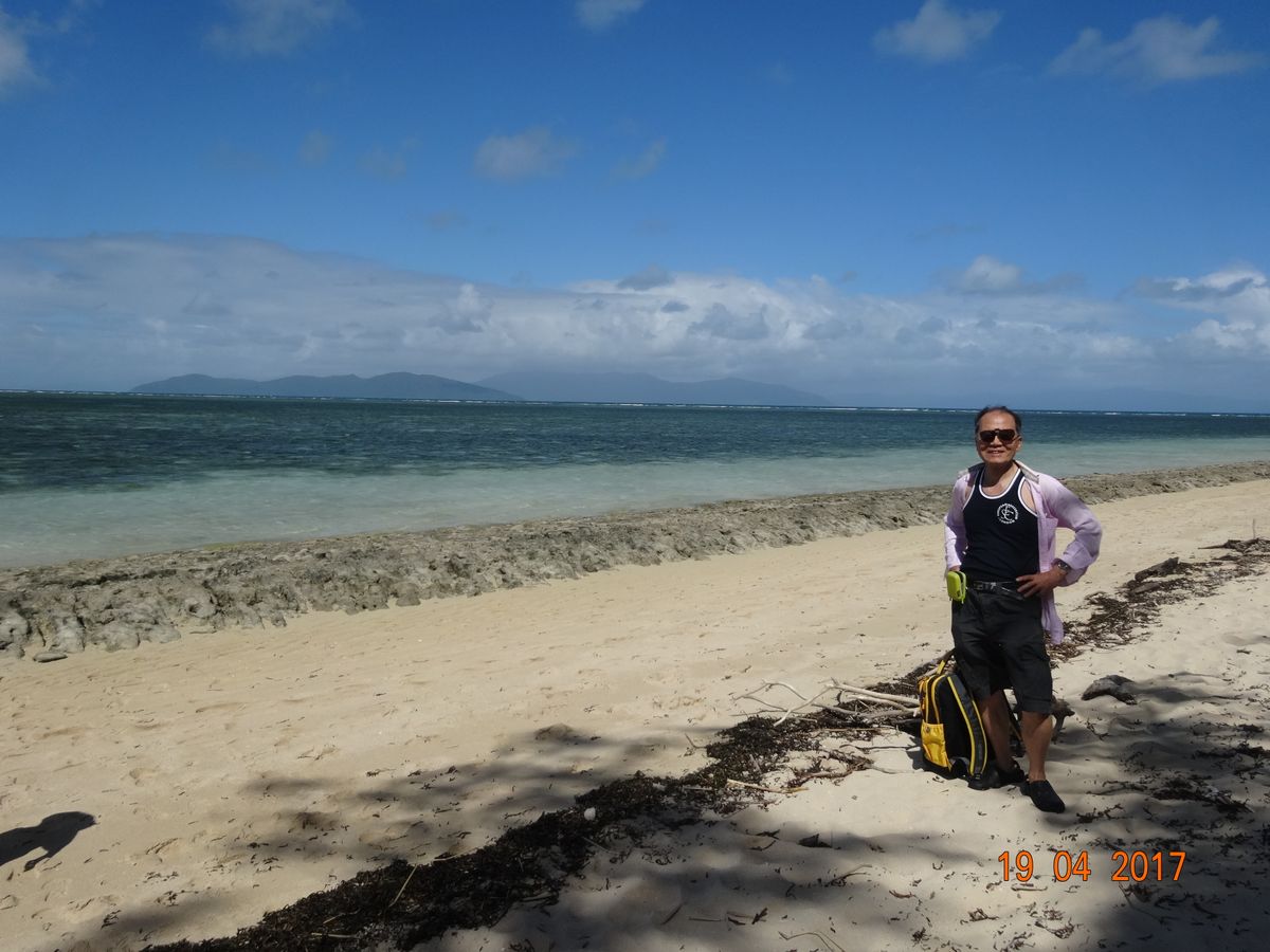 当日は風が強く船も揺れて気分が悪くなりどうなる事かと不安でしたが、ガイドの南さんがとてもよくして下さり、無事到着。島では天候に恵まれのんびりした一日を過ごせました。スノーケリングは泳ぎが苦手な主人はライフジャケットを借り、私は棒状の浮き輪を借りて参加。白波が立っていて透明度が悪く残念でしたがそれでも色とりどりの珊瑚のあるところまで連れて行ってもらい楽しめました。海からあがり、テンションがあがった主人は年甲斐もなく飛んでます!
