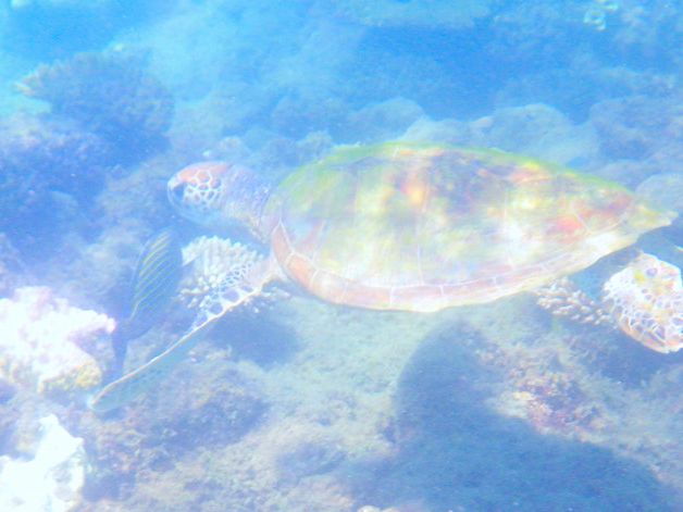 着いて準備をし、早速シュノーケリングをしました。少し水は冷たいですが入れない程度ではなかったです。(カップルが一組寒いと言って断念していましたがウェットスーツを有料で借りれば大丈夫です)シュノーケリングでウミガメに会えました♪