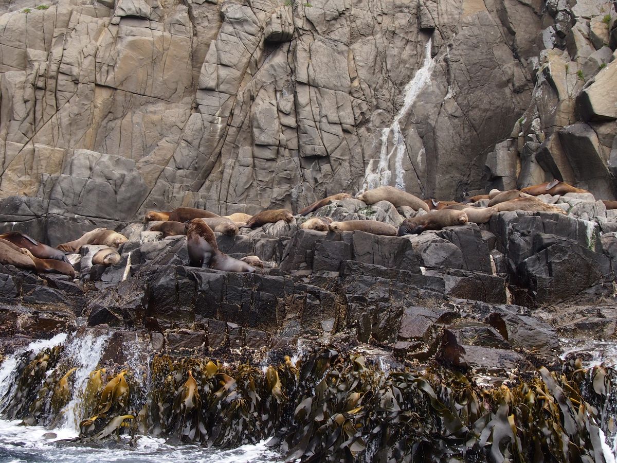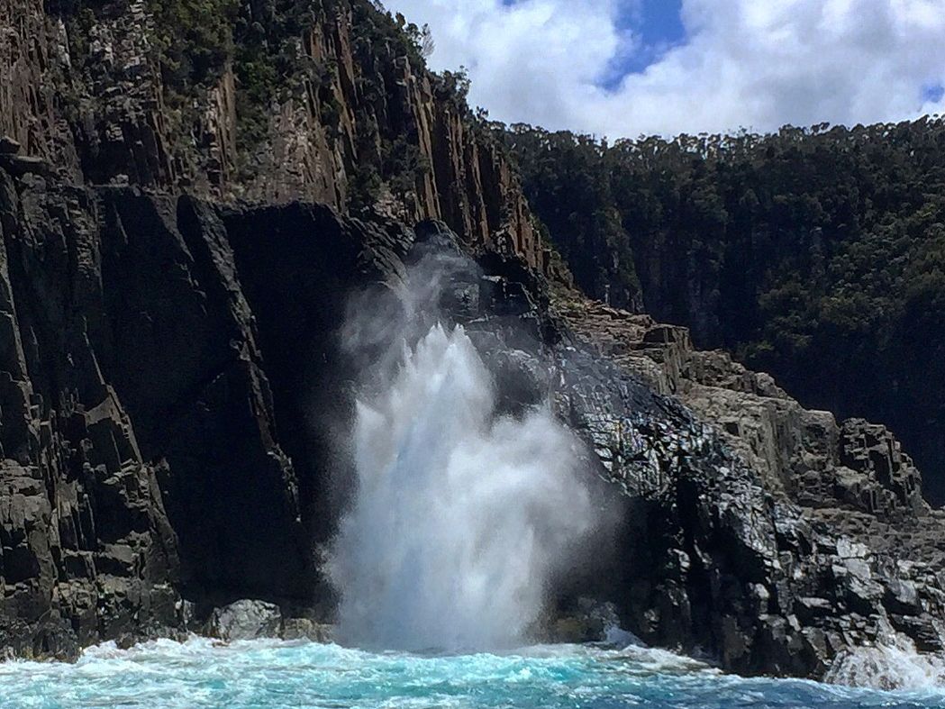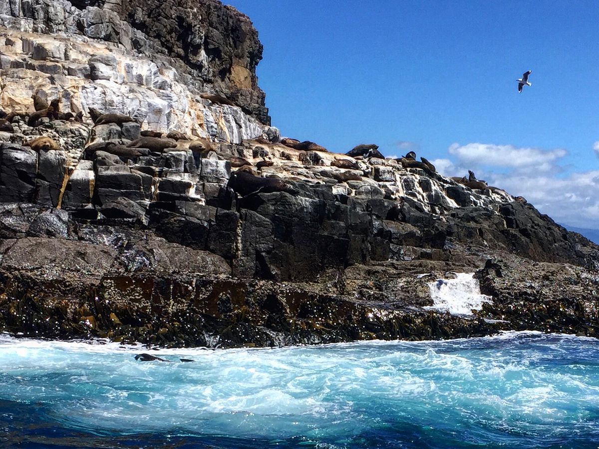 ブルーニー島の最南端、オットセイがゴロゴロしているゴールまで、イルカやミズナギドリやダイナミックな地形を楽しみながら荒波に揉まれます。真夏のオーストラリアとは言え、南緯が北緯換算で北海道位なので、沖に出て風に吹かれると激寒で修行の様でした!ウインドジャケットを貸してくれますが、十分暖かい格好を準備して参加することをお勧めします。