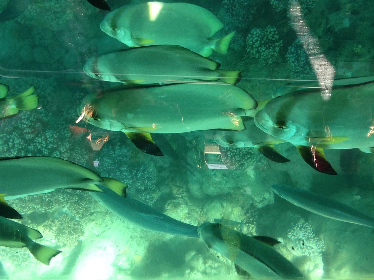 シーウォーカーについては、沖合いの綺麗なサンゴ礁近くで行われ、係りの方が海底で餌を撒いた際には沢山の綺麗な魚が集まってきたので、特に女性の方は楽しそうでした。