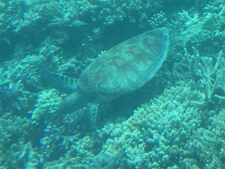 シュノーケリングは海亀と5回遭遇しました。かなり浅瀬にも藻を食べに来ていて、50cmの距離で観察できました。大きなウツボも浅瀬に来ていてビックリしました。