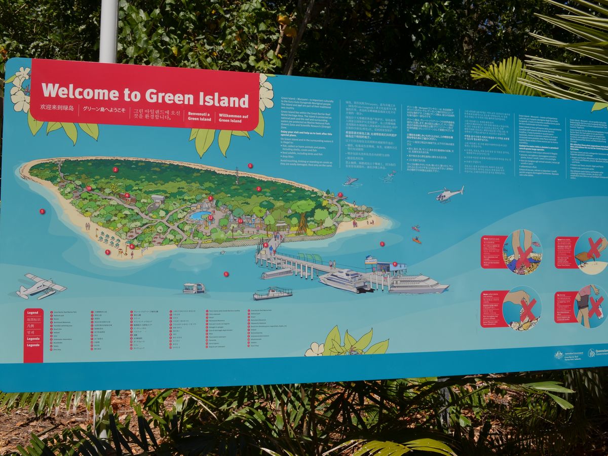 到着後、インフォメーションで島のガイドマップを借りました。紙ではなく防水処理をした本。地図と植物の案内が記載されています。グリーン島一周!。ゆっくり歩いても30分あれば充分です。
