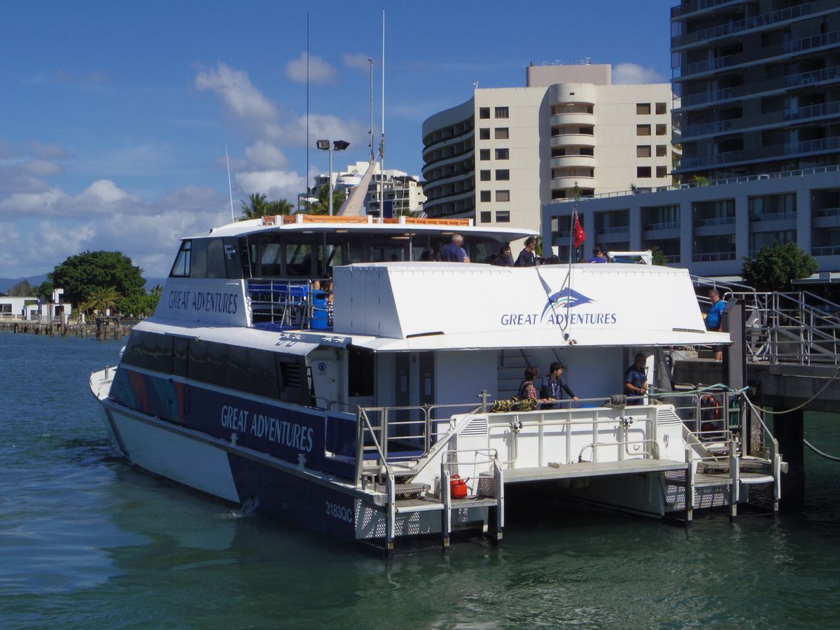 朝7時30分クルーズ船のフロント受付、8時乗船。風が強めだったので船は多少揺れましたが私たちは船酔いすることもなくミニクルーズを楽しみました。船には沢山の日本人スタッフがいて島内のオプションを盛んに進めていました。島内についてからの疑問についても快く答えてくれるので安心です。7月のケアンズは冬と言うこともあり海水はビックリするほど冷たく長時間遊ぶのは無理でしたが砂浜に上がれば太陽が直ぐに体を温めてくれます。魚は桟橋を降りて右側の方が沢山見ることができお勧めです。