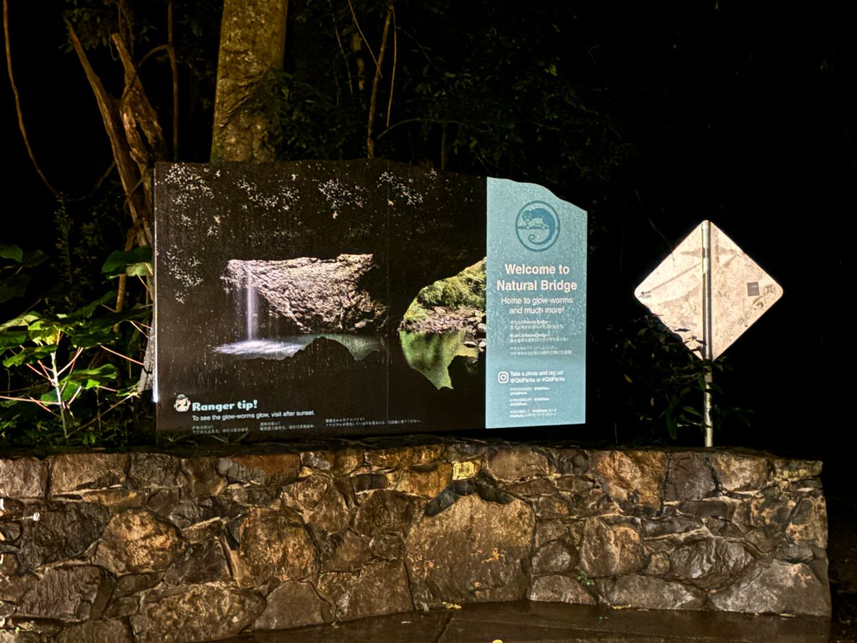 一周1キロのコースを1時間ぐらいかけて歩きます。暗いのでゆっくりです。5歳の子供でも高齢者でも平気との事。手すりがありますが昆虫がいるので触れません。階段を手すりなしで上がれる筋力があれば回れます。ゴールドコーストマラソン後の筋肉痛の方も平気です。
