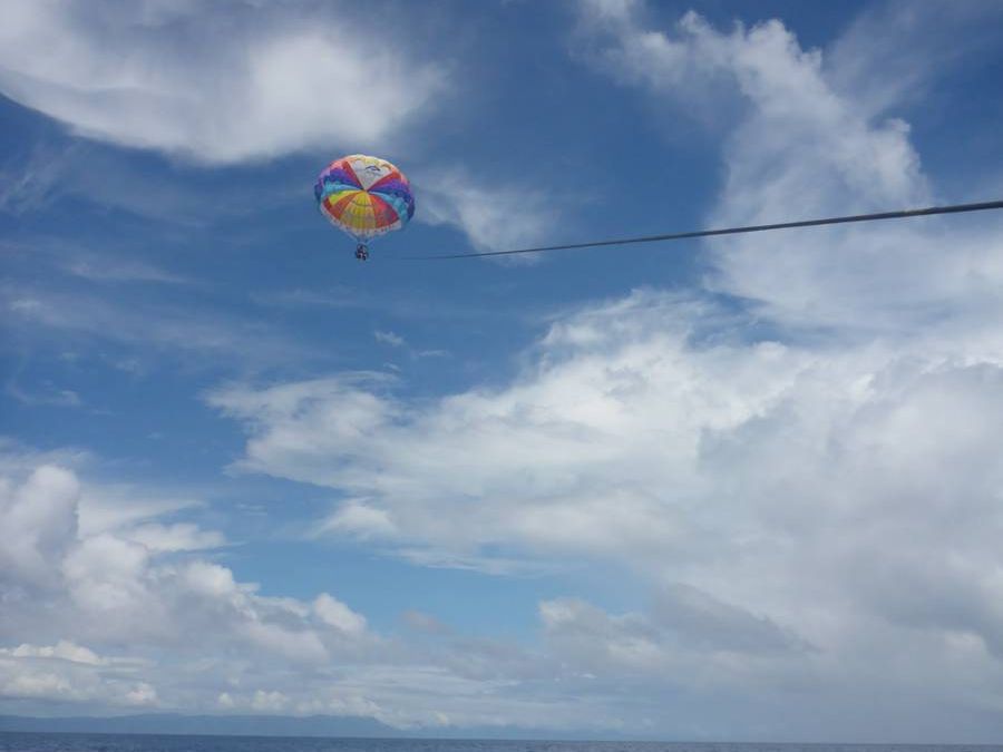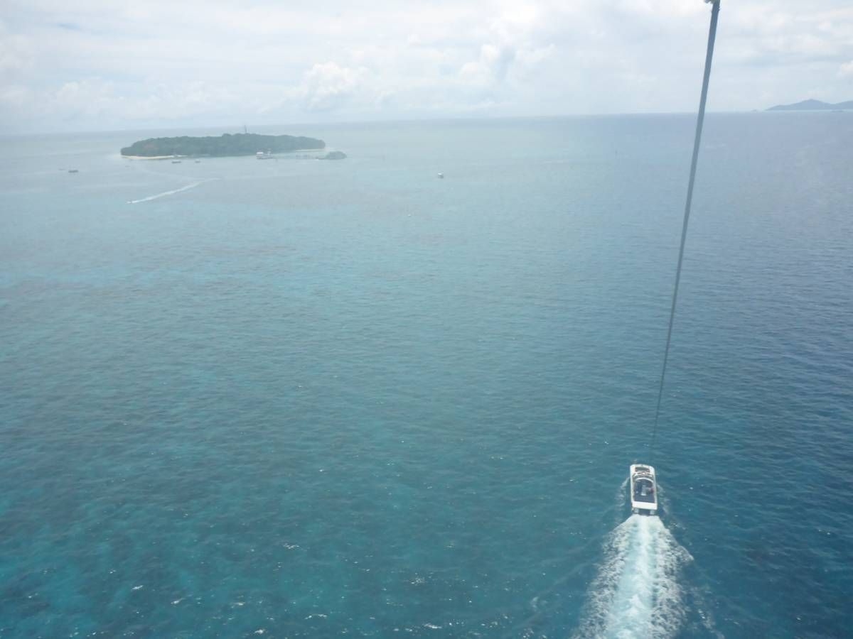 スマホなどの荷物は持っていけません。カメラを渡され自分で取った写真とクルーの取った写真は、iphoneはAir dropで60AUD、AndroidはUSB渡しなのでプラス10AUDでもらえます。画質は残念ながら思ったより良くないです。Go Proは持ち込んで上がっていた方がいました。ほとんど揺れず、多少高所恐怖症気味ですが全く怖くありませんでした。上空から見るサンゴ礁は本当にきれいで年配の方にもおすすめです。ただし、お天気が悪いと海の色がわかりにくくなるので残念に感じるかもしれません。また、スリルを求める方には全くもの足りないと感じると思います。