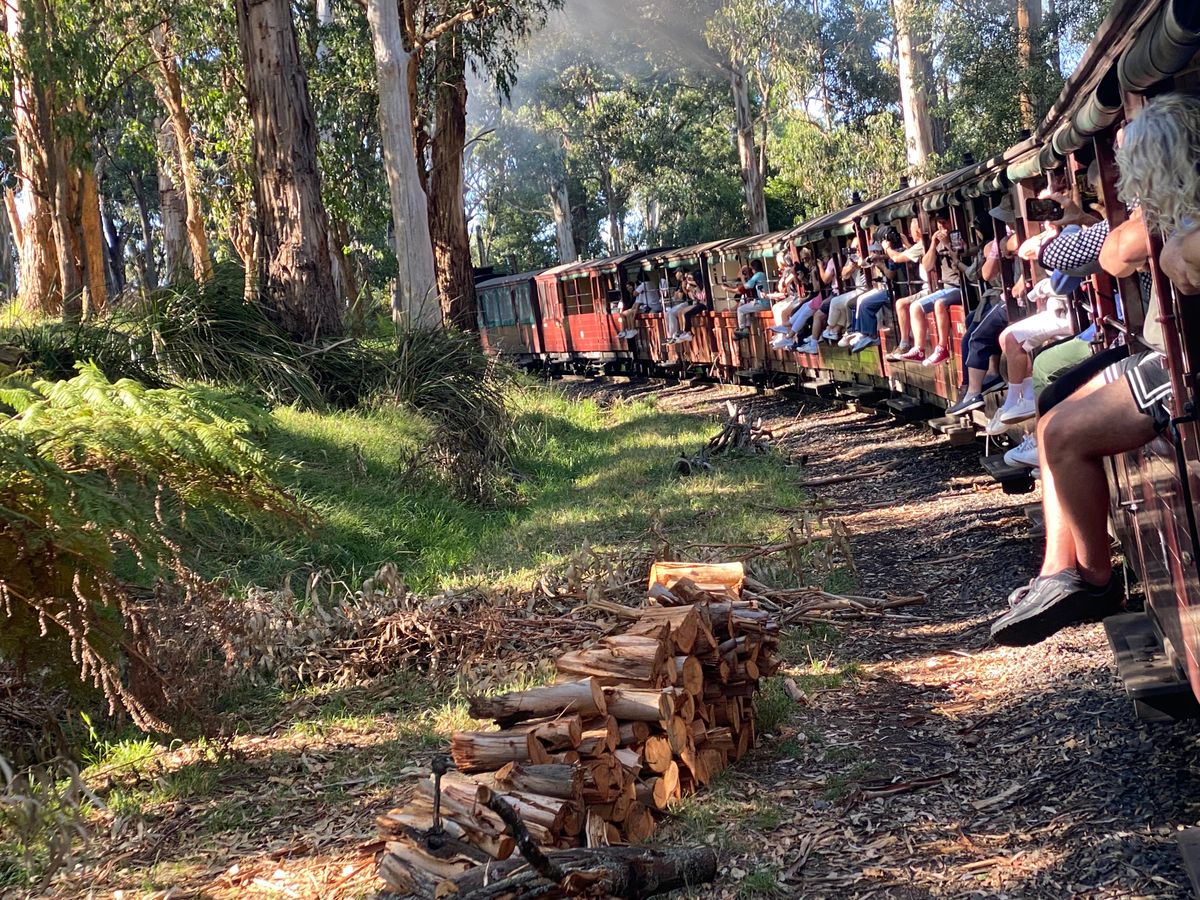 蒸気機関車初めて見ました。普通じゃできない座り方で乗ることもできてちょっとしたアトラクションでした。あまりにも暑い日は蒸気機関車が運行しないそうです。数日前の蒸気機関車の運行がキャンセルになったと聞きました。