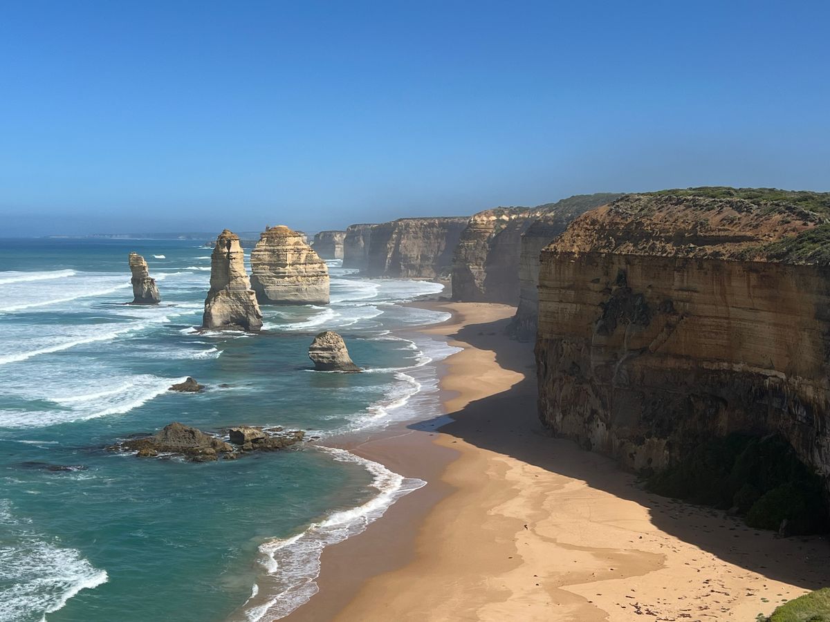 今回は珍しく快晴で風がない最高の天気でラッキーでした。逆回りだったのでお昼時の一番天気のいい時間帯に透明度の高い美しい海と12使徒を見ることができました。