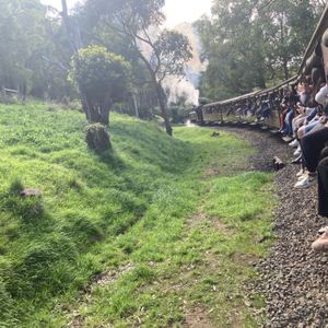 パッフィンビリー鉄道は写真映えしやすい右手側が人気ですが(私は座れませんでした、、)、左側でも体を出せば列車の先頭から曲がる様子は撮れます。私は8月中旬に参加しましたが、思っていたより時間的に乗車できるので、着込んでいくのがおすすめです。厚手のカーディガンにコートを着ていましたがそれでも少し冷えました。