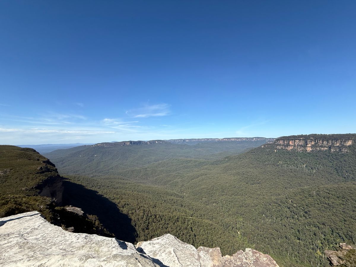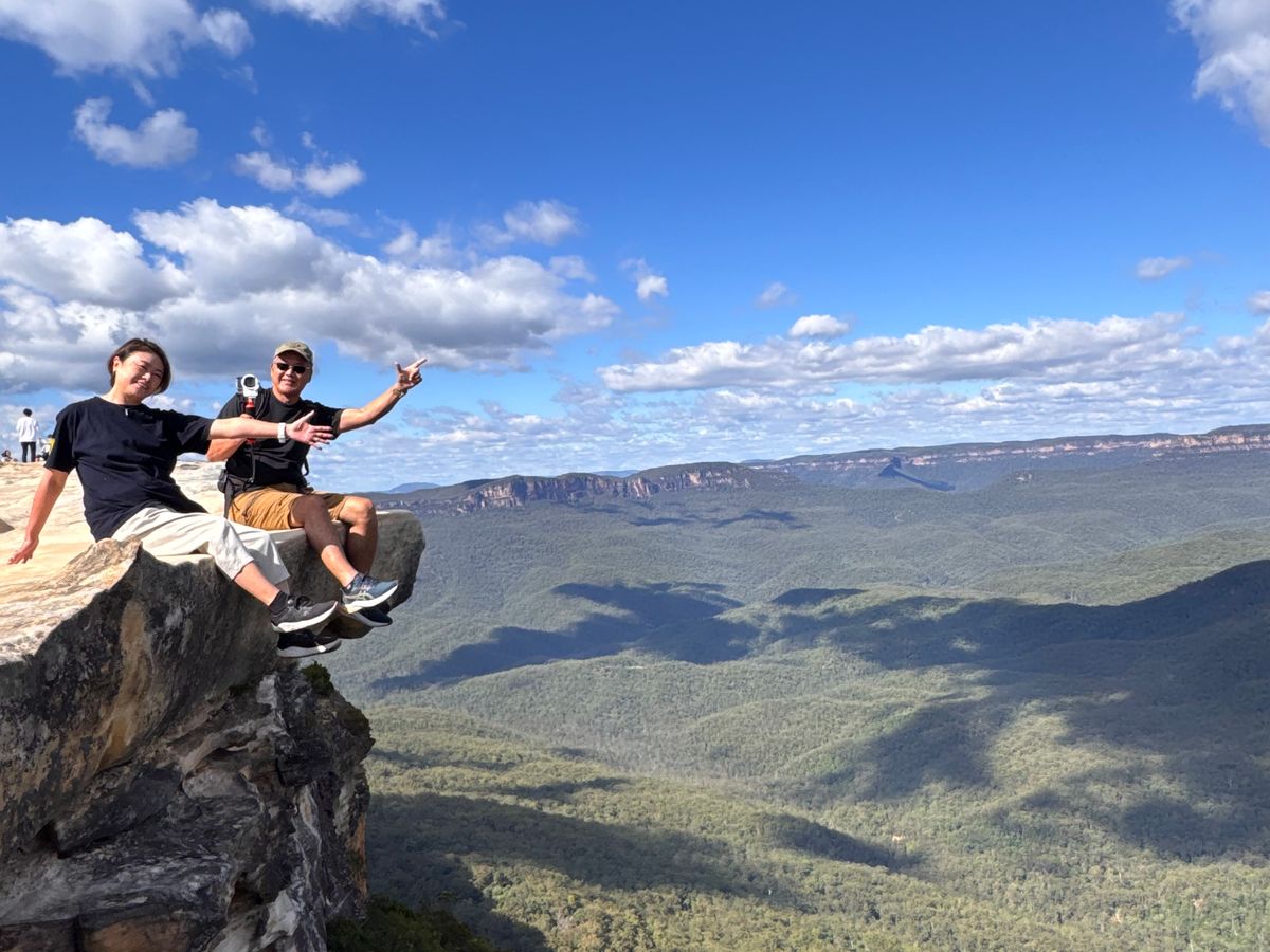 断崖絶壁に座って見たブルーマウンテンが綺麗だった。ガイドさんに写真を撮ってもらって良い思い出になりました。