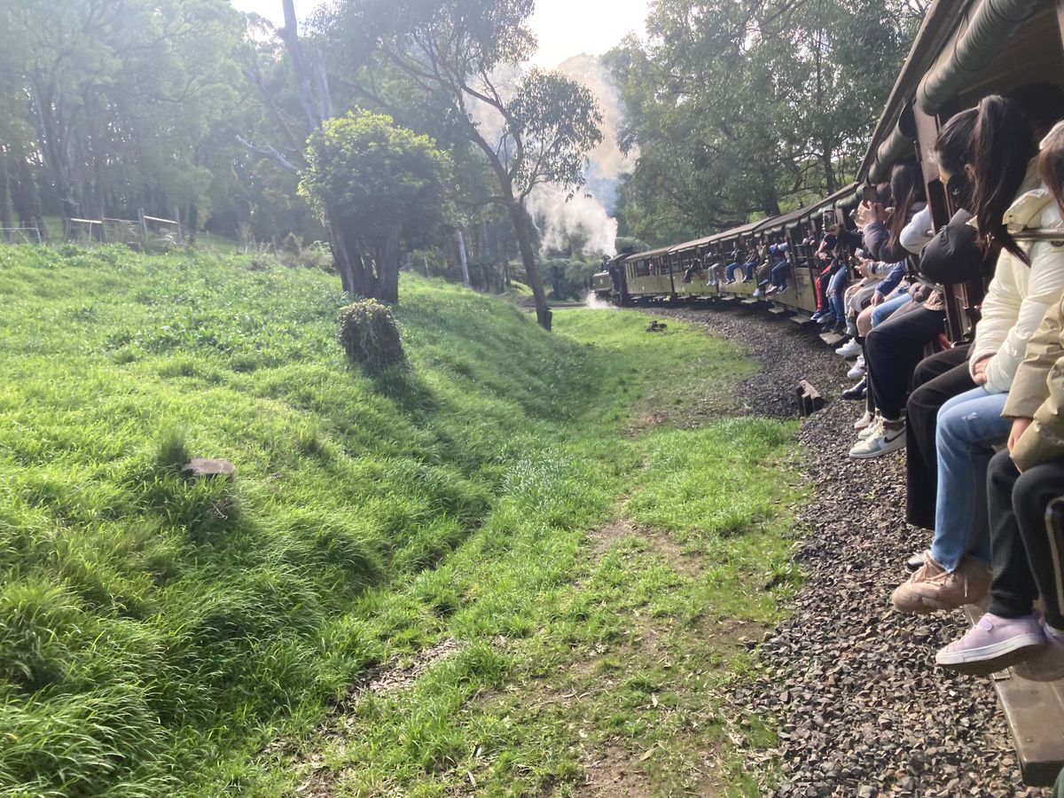 パッフィンビリー鉄道は写真映えしやすい右手側が人気ですが(私は座れませんでした、、)、左側でも体を出せば列車の先頭から曲がる様子は撮れます。私は8月中旬に参加しましたが、思っていたより時間的に乗車できるので、着込んでいくのがおすすめです。厚手のカーディガンにコートを着ていましたがそれでも少し冷えました。