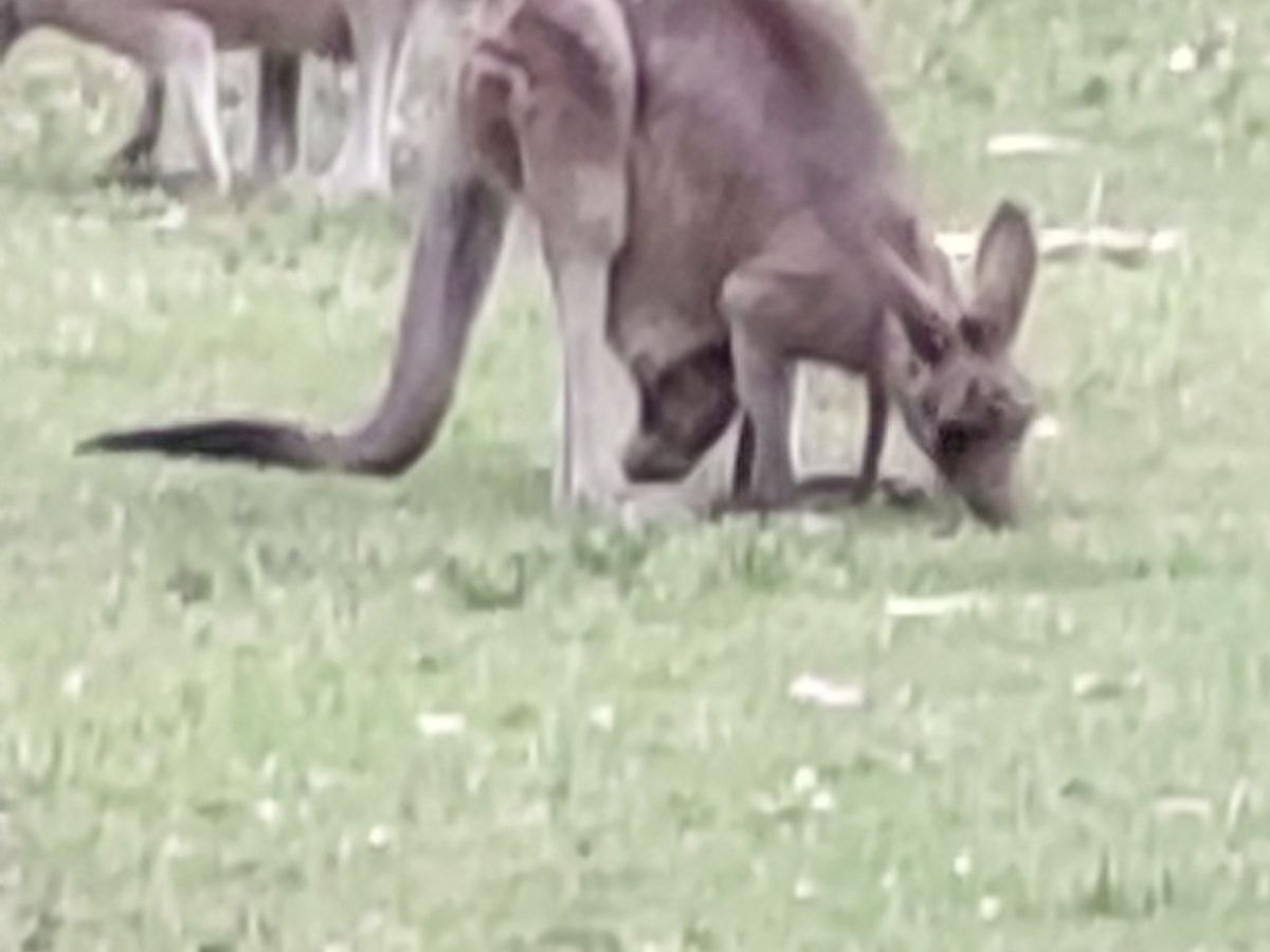 野性のカンガルーがいるか探してみましょうと、ワイナリーから次のワイナリーに移動する途中でぶどう畑の中を車で探してくれて、野性のカンガルーの親子を見て写真を撮ることもできました。この時に見られなかったら、オーストラリア滞在中に見るチャンスはありませんでした。