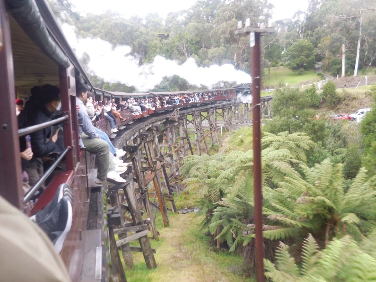 最初は自力で鉄道のチケットを予約してシティから電車に乗ってBelgrave駅まで行くことを考えてましたが、電車の運休が多いことと効率を考えてツアーにしました。自力で行くだけでは行かなかったようなササフラスの街や美味しいミートパイ屋さんも紹介していただいました。ダンデノン山頂からの景色はきっとキレイだと思うのですが霧が出ててあまり見えなくて少し残念でした。ガイドさんの日本語やお聞きしたエピソードも面白く、全体的にはとても良い旅となりました!