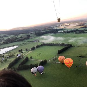 気球の籠に乗り込んで、いざ上空へ。思ったよりも高く上昇していくので 飛行機のような景色です。