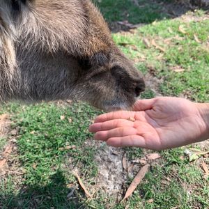 夕方以降はカンガルーたちもお腹いっぱいなのか、餌づけしてもあまり食べてくれませんでしたが(笑)、とても大人しく人間慣れしているので自然とカンガルーだらけの広場で触れ合うことができます。