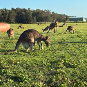 カンガルーの群れも多くおり、子供がいるのも見られました。動物園とは違う、あまり寝そべらず、周りを警戒しながら食事している姿がありました。