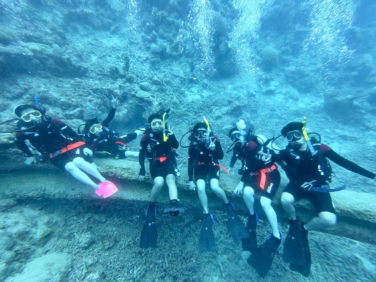 今回、友達と一緒に体験ダイビングに参加させていただきました。当日は快晴で、海もとても透き通っていました。一緒に参加した友達はダイビング経験者で難なく潜れていましたが、私はダイビング初心者であまり上手く潜ることはできませんでした。ですが海の中の色々な魚を見ることができ、とても楽しかったです。フライトの関係で2本目はできなかったですが、その代わりにシュノーケリングをさせていただきました。シュノーケリングは体験ダイビングと違って自分のペースでできるので、こちらも楽しかったです。
