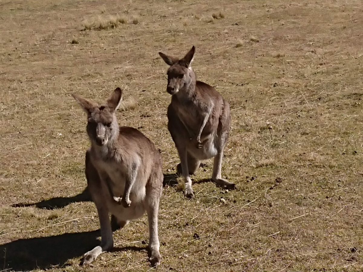 野生カンガルー:たくさんいて、寄ってきた。野生といっても人に慣れています。フンが凄くて、避けてあるくのは不可能・・。