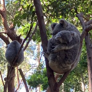 念願のコアラ抱っこ… フワフワでイイ匂いがして感無量でした!Tシャツの裾にウンチが少しつきましたが、まったく臭くなかったです。殺菌効果のあるユーカリを食べているせいかも、と勝手に推測しましたが、ウンチがついて運をもらった気分♪