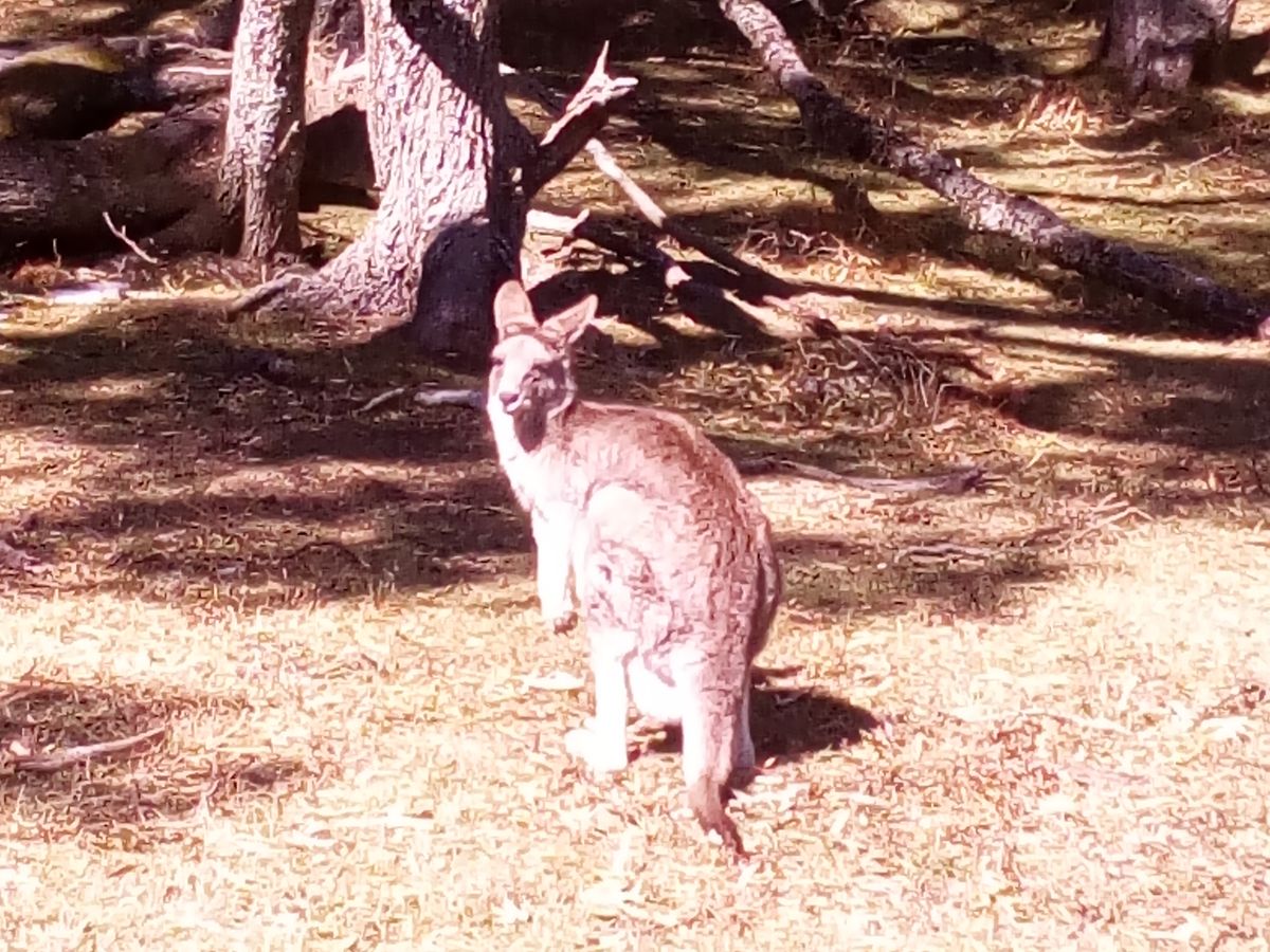 そこから野生のカンガルーのいる所へ。車窓からですがたくさんのカンガルーが見れました。望遠鏡も貸してくれますが、肉眼でも見えるくらい近かったです。