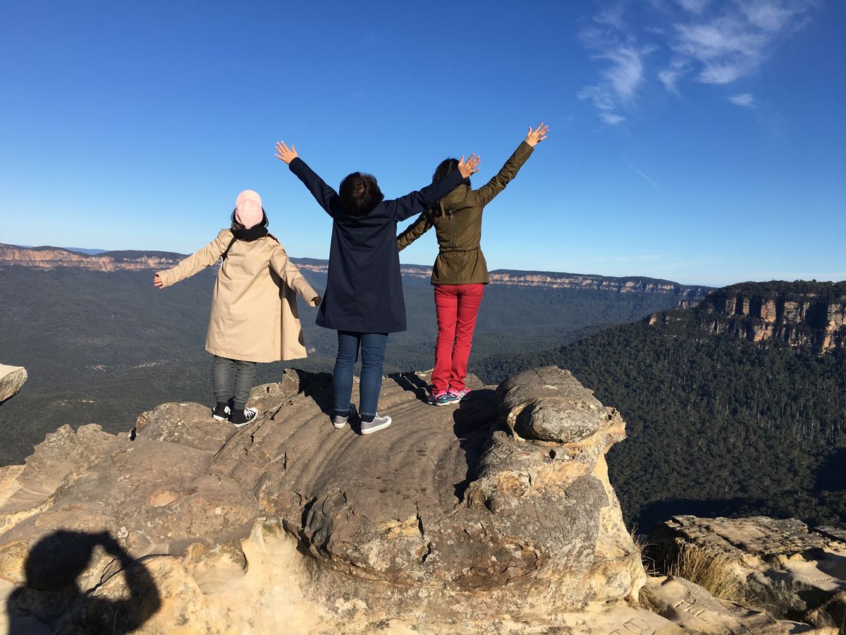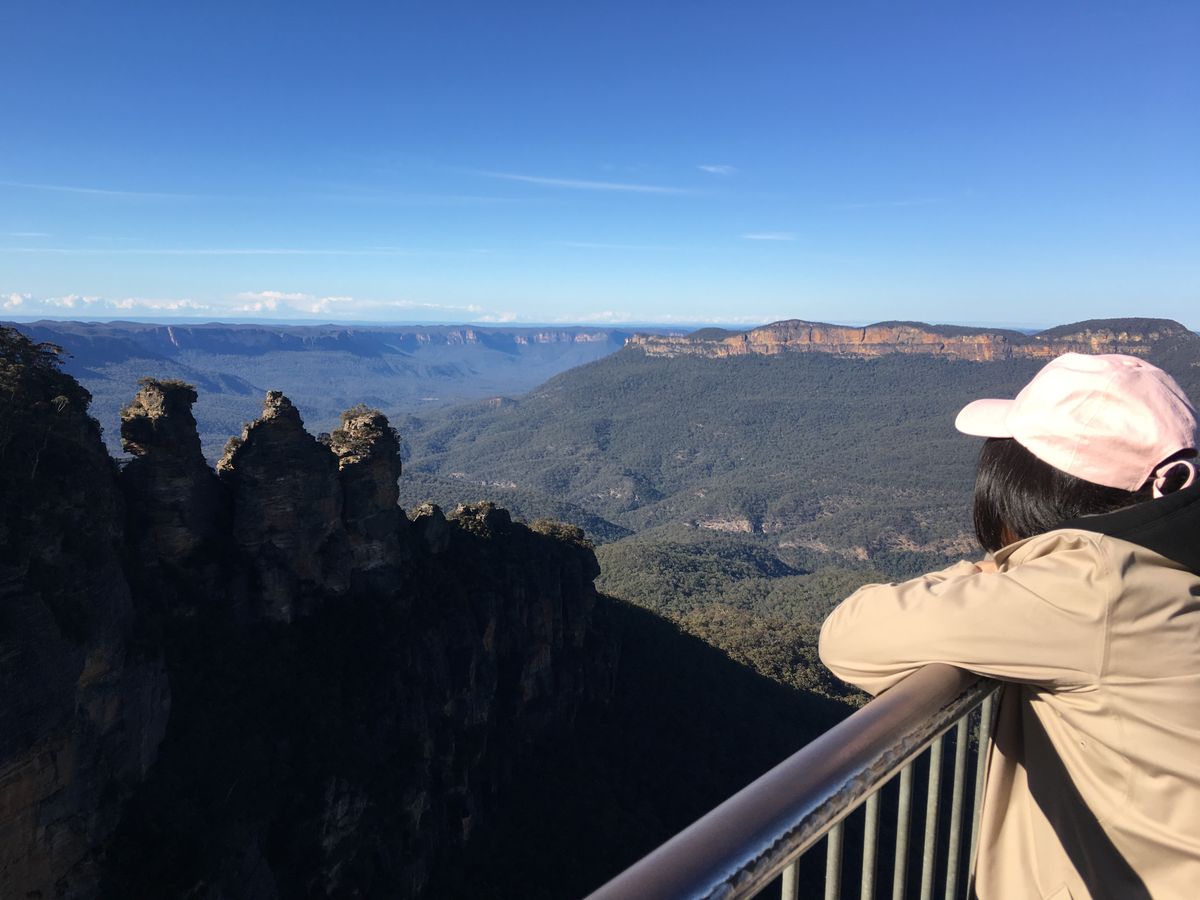 ブルーマウンテンズは、立っているのも、やっとなぐらいの強風で霧がかかっていましたが、虹が見えました。景色は壮大でした。