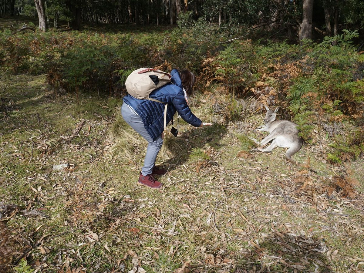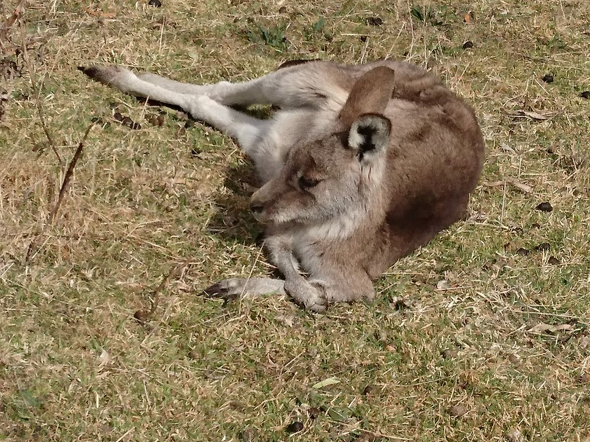 「野生カンガルー探検」とタイトルにあるので、てっきり広い草原でカンガルーを探し回って遠目に眺めるものと思っていたのですが、カンガルーの群れが寛いでいる場所に連れて行ってもらえ、間近で見る(触れ合う)ことが出来、思い出に残る体験となりました。