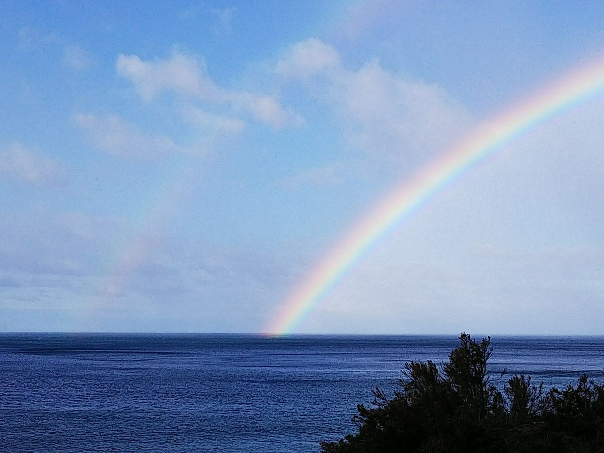 朝は生憎の雨でしたが、シティを出た頃から快晴!グレートオーシャンロードの入り口で一瞬雨に遭いましたが、お天気が回復すると見事な虹のアーチ。しかも珍しい海からのダブルレインボーで、一気に気分も上がりました。