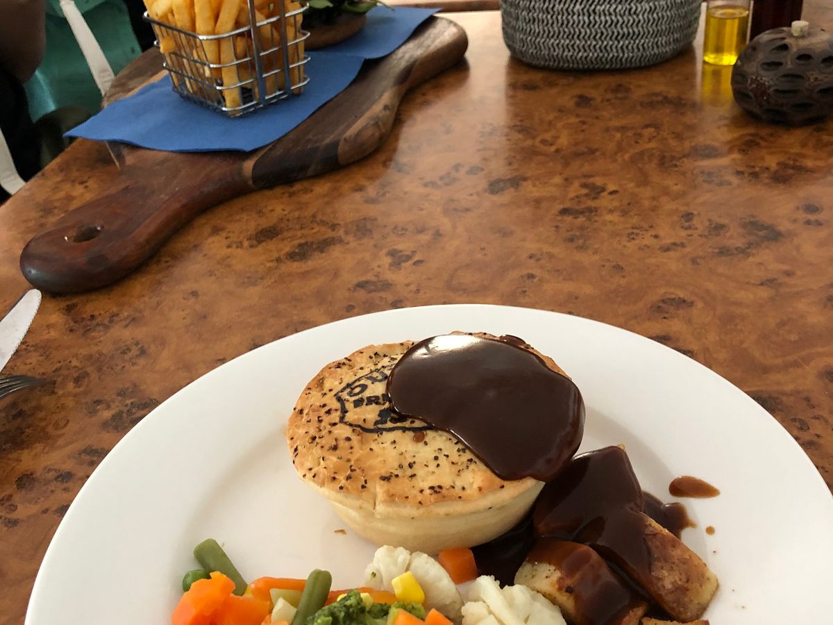 ランチはミートパイを選んだが、フィッシュ&チップスが美味しそうでした。